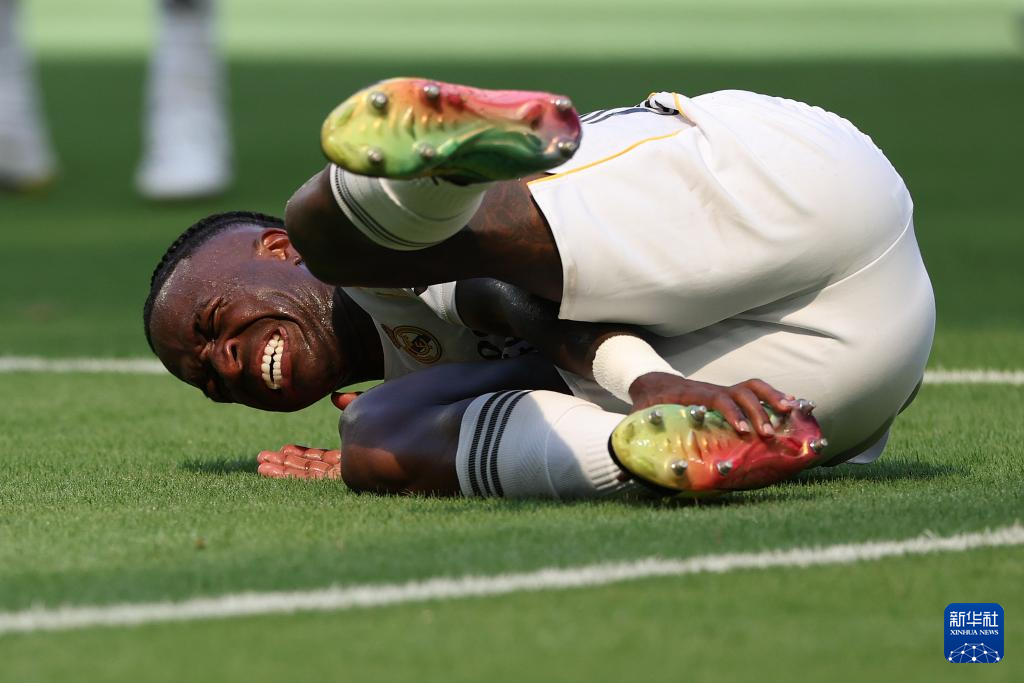6月18日,皇家马德里队球员维尼修斯在比赛中倒地。新华社记者 李明 摄