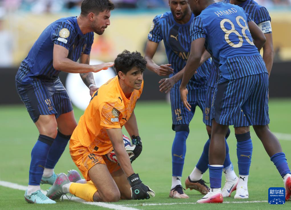 6月18日,利雅得新月队门将布努(左)在比赛中扑救。新华社记者 李明 摄