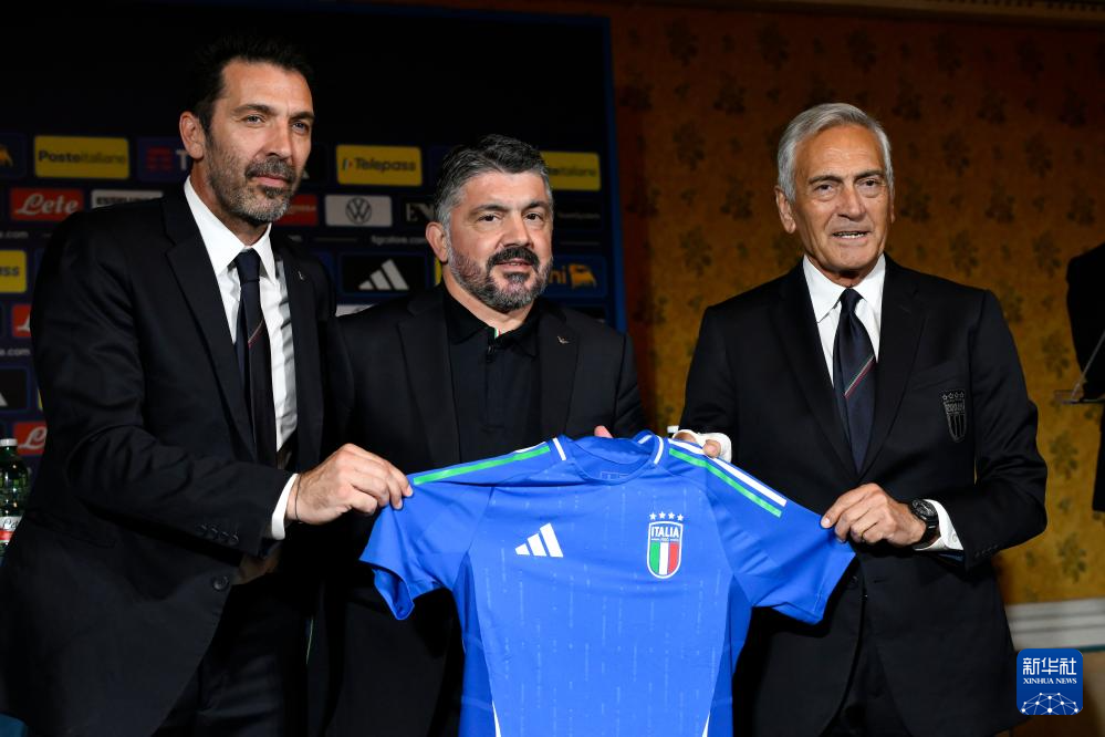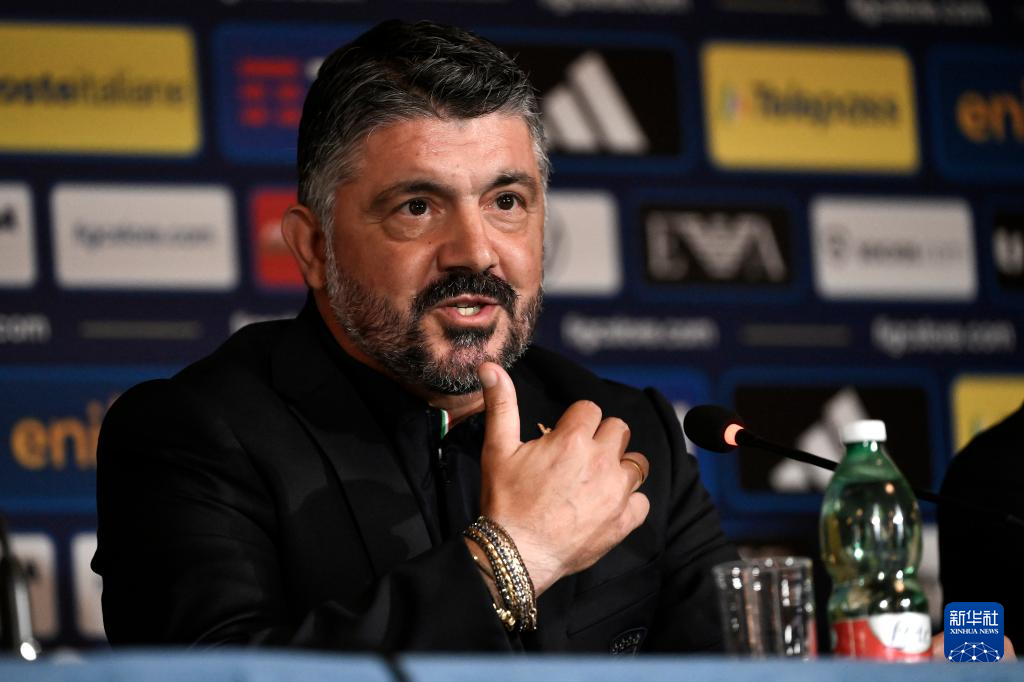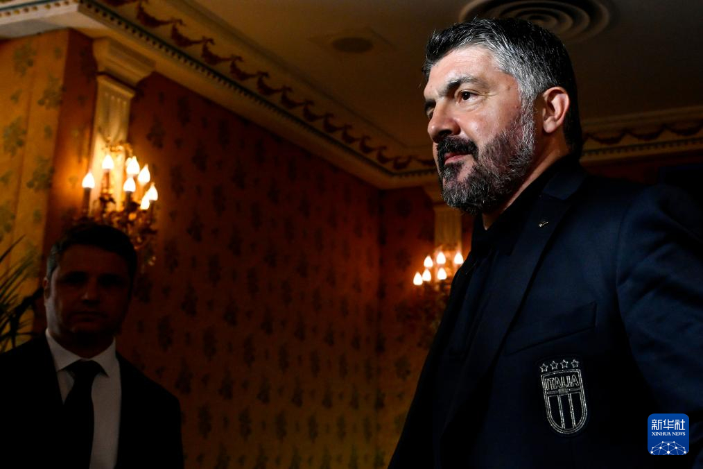 当日,意大利男足新任主教练加图索在意大利罗马举行的新闻发布会上正式亮相。