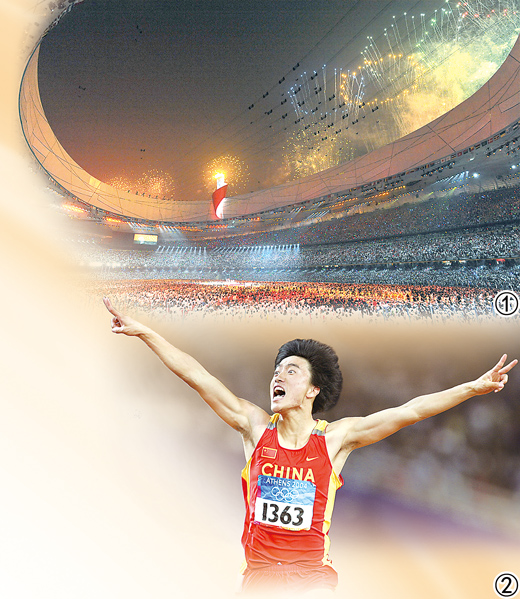 图②:2004年雅典奥运会,刘翔在男子110米栏比赛中夺冠。影像中国