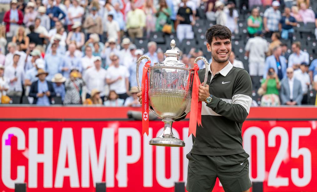 阿尔卡拉斯2023年第一次出战女王杯即在这一温网前的草场赛事上夺冠。今年他法网卫冕后给自己短暂放假庆祝,然后来到伦敦连胜4场晋级决赛。