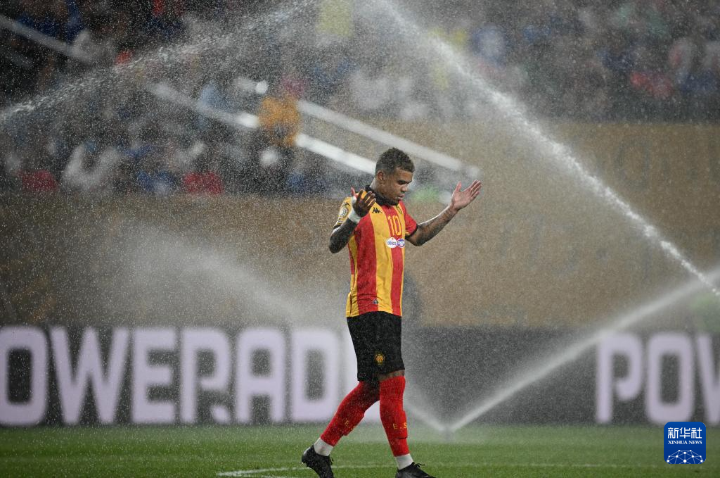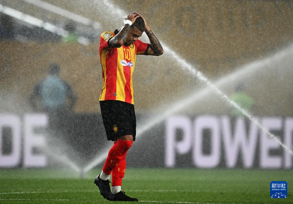 6月24日,突尼斯希望队球员扬·萨瑟在补水时间下场休息。