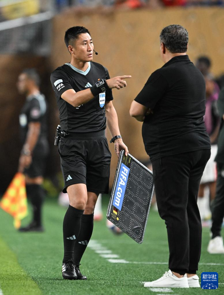 6月24日,中国裁判马宁(右)在本场比赛中担任第四官员。