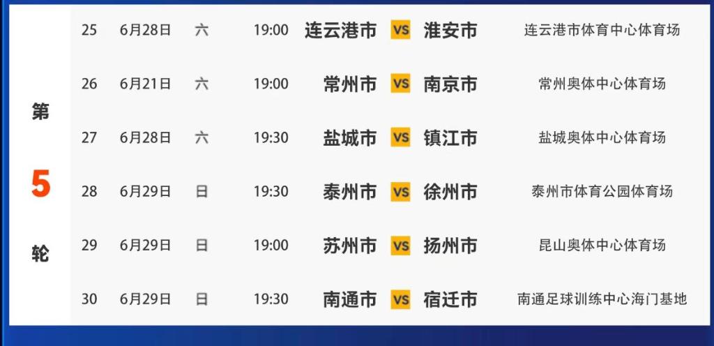 江苏省城市足球联赛(“苏超”)第五轮对阵表