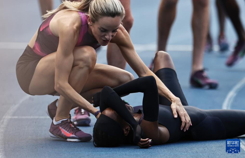 6月26日,肯尼亚名将基普页真(下)在挑战后。新华社记者 高静 摄