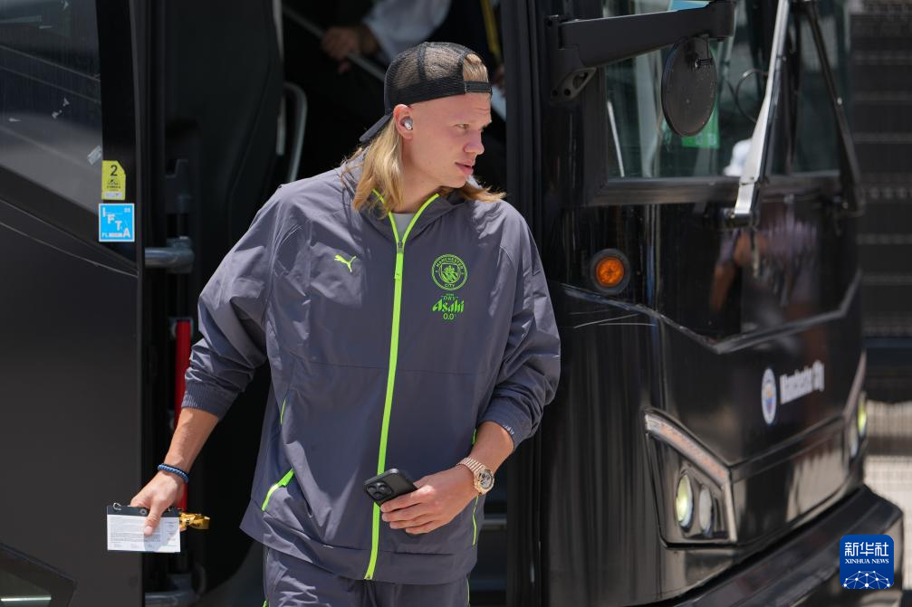 6月26日,曼城队球员哈兰德在比赛前到达球场。
