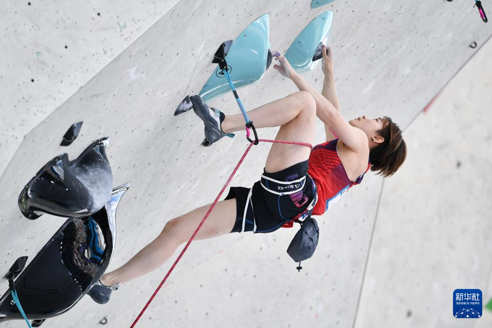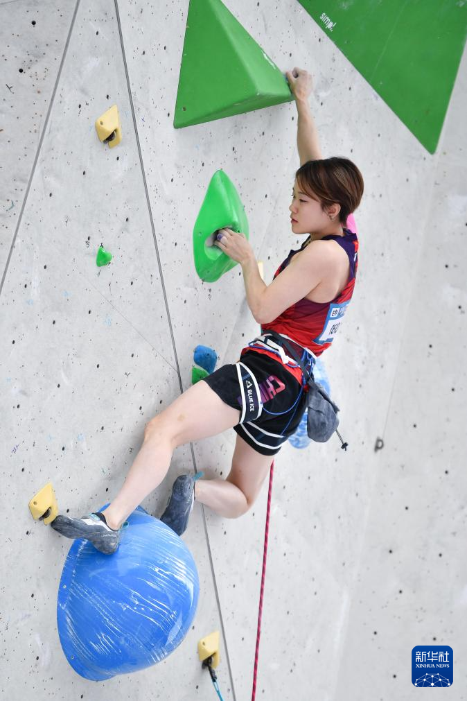 6月28日,中国选手韦雅丽在女子难度攀岩资格赛中。她最终无缘半决赛。