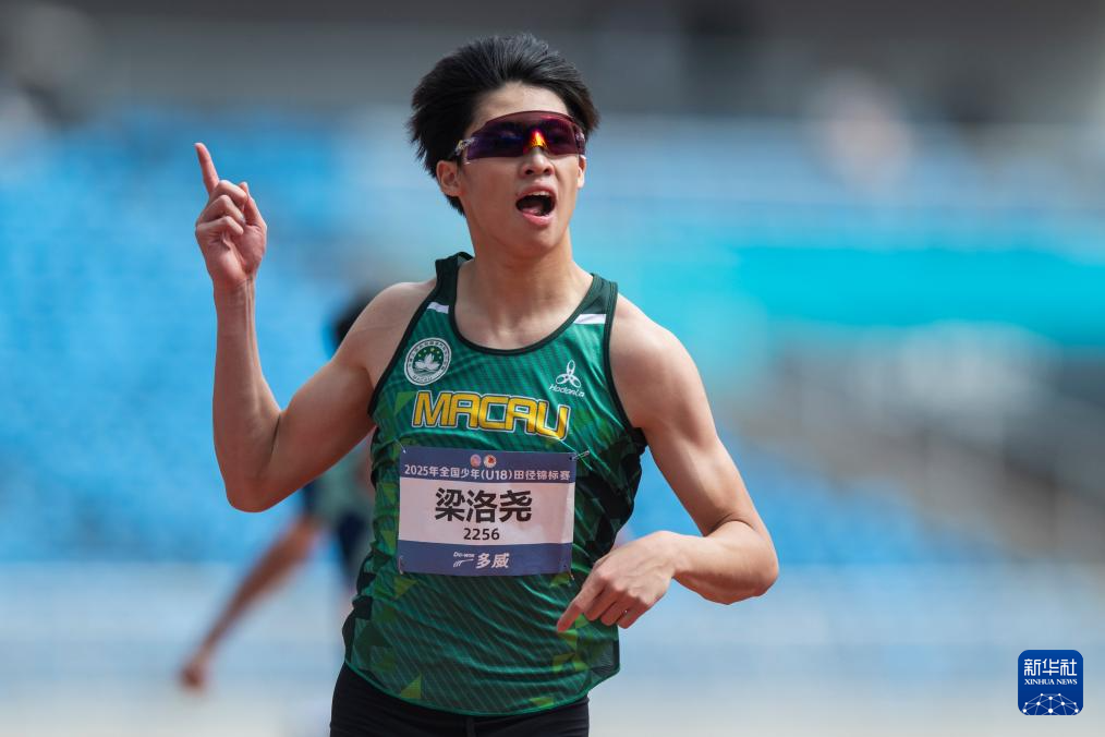 6月28日,澳门队选手梁洛尧在男子少年U18组100米预赛冲线后。最终,他以10秒72的成绩晋级半决赛。