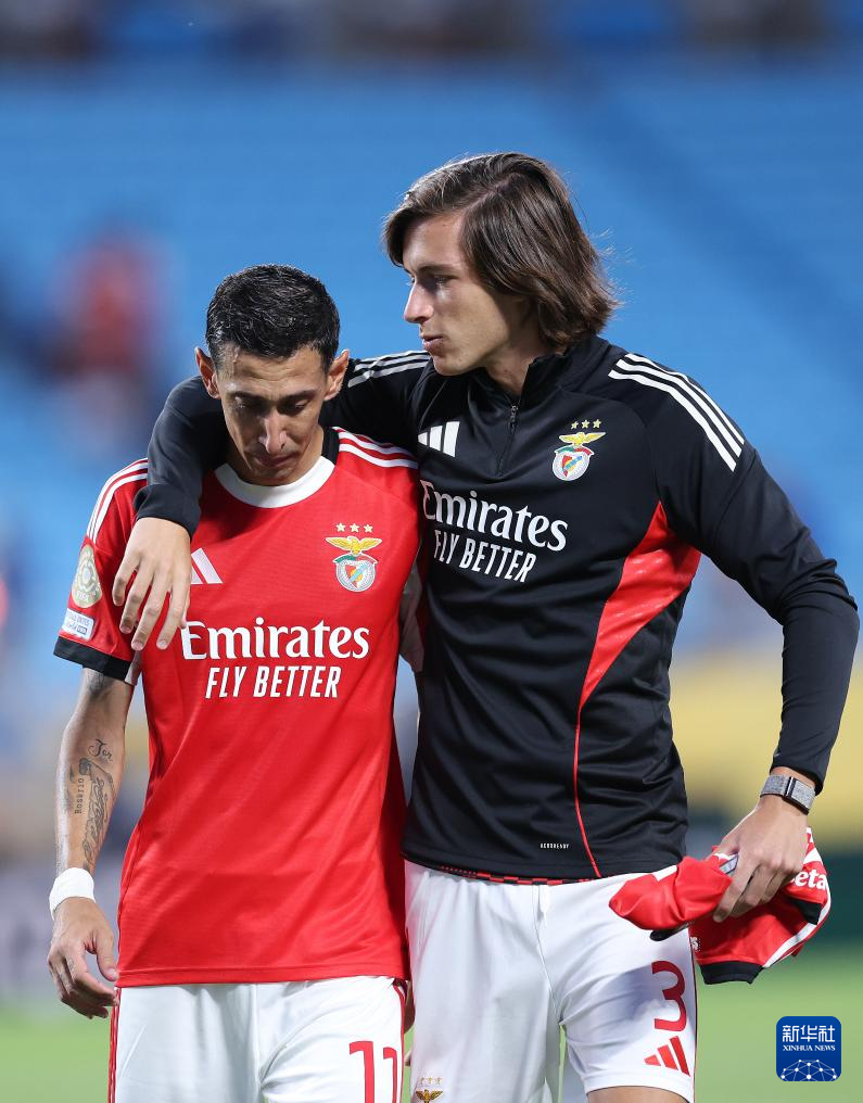 6月28日,本菲卡队球员阿尔瓦罗·费尔南德斯(右)赛后安慰队友迪马利亚。