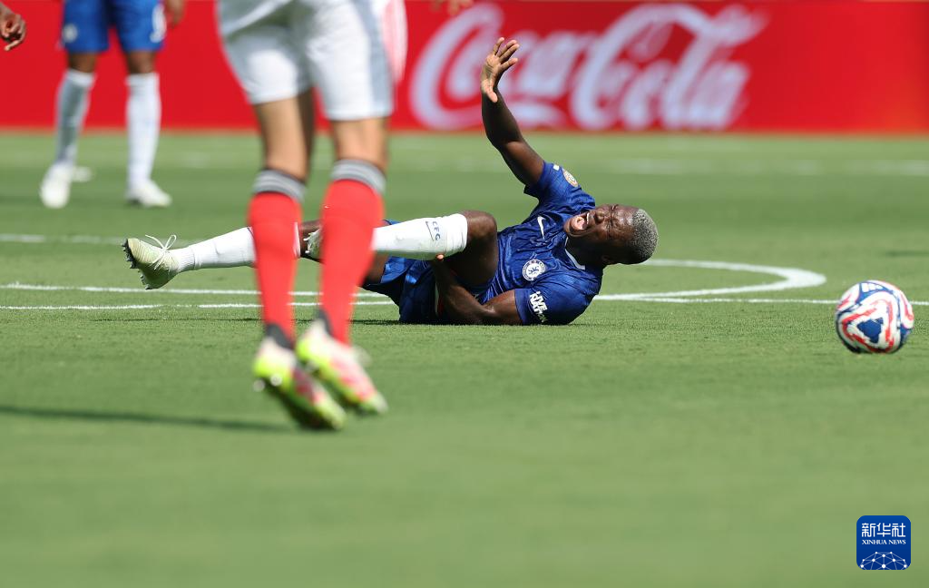 6月28日,切尔西队球员莫伊塞斯·凯塞多在比赛中倒地。