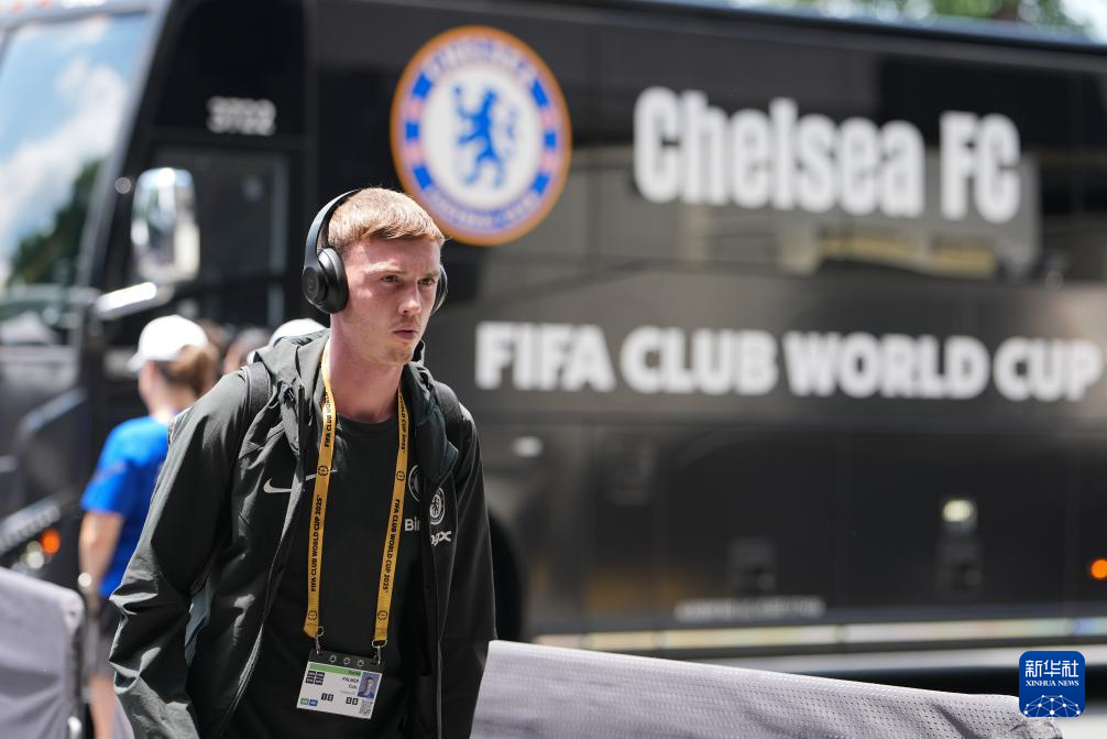 6月28日,切尔西队球员帕尔默在比赛前到达球场。
