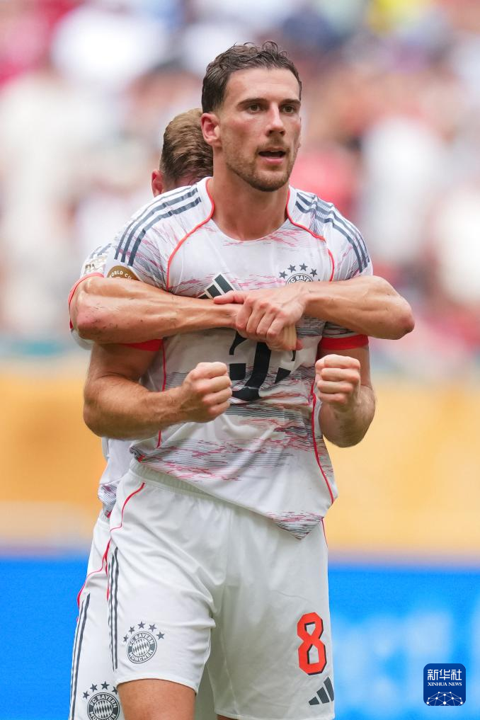 6月29日,拜仁慕尼黑队球员格雷茨卡(前)在比赛中庆祝进球。