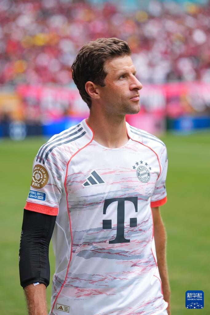 6月29日,拜仁慕尼黑队球员穆勒(中)在比赛中。