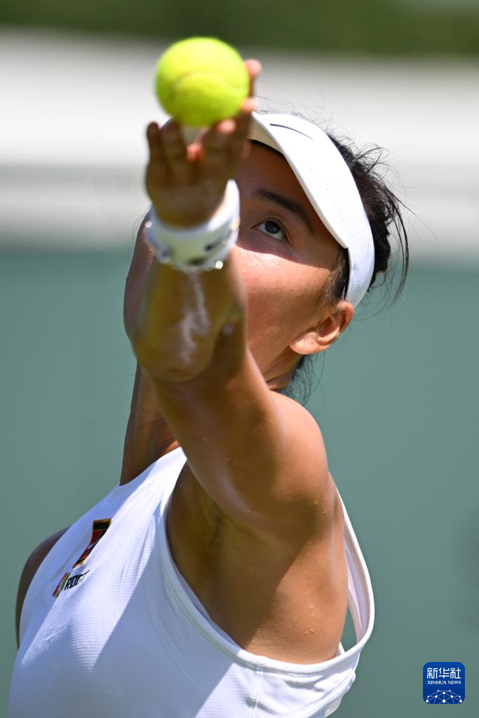 6月30日,袁悦在比赛中发球。新华社记者 赵丁喆 摄