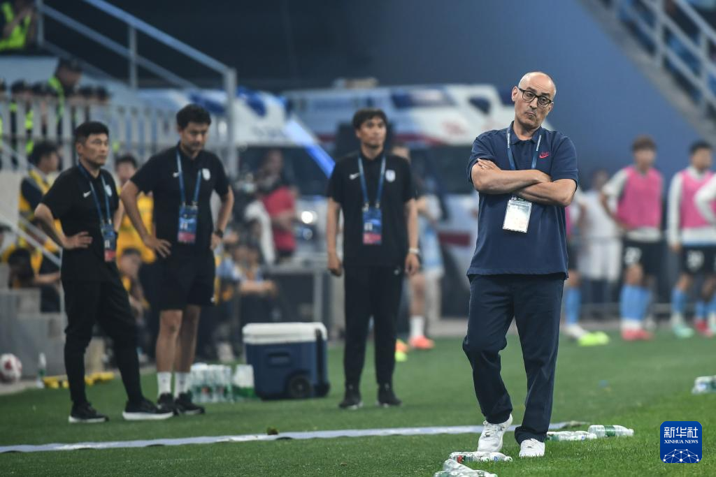 6月30日,浙江俱乐部绿城队主教练卡内达(右)在场边观赛。新华社记者 潘昱龙 摄