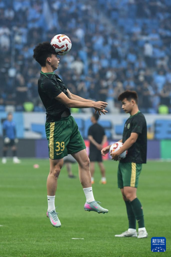 6月30日,浙江俱乐部绿城队球员王钰栋(右)在赛前训练中。新华社记者 潘昱龙 摄