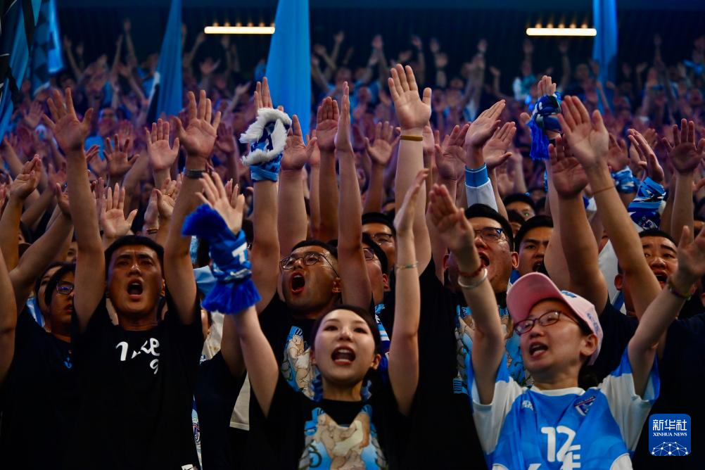 6月30日,大连英博海发球迷在看台为球队加油助威。新华社记者 吴青昊 摄