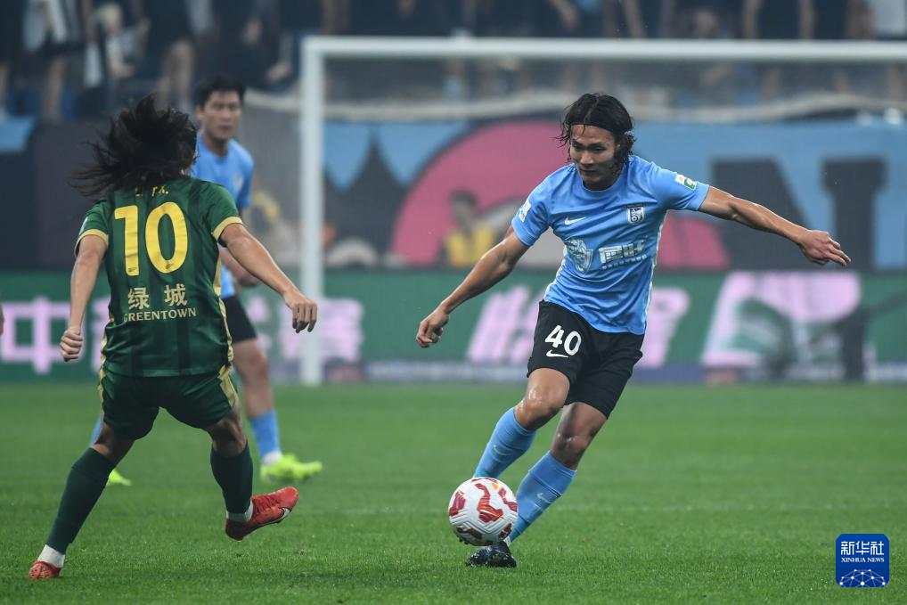 6月30日,浙江俱乐部绿城队球员王钰栋在比赛中。新华社记者 潘昱龙 摄