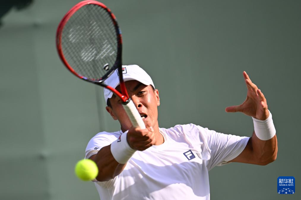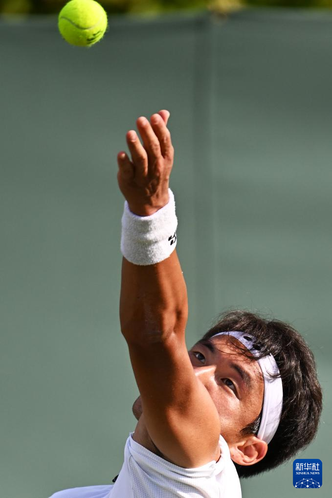 7月1日,美国选手中岛布兰登在比赛中回球。新华社记者 赵丁喆 摄