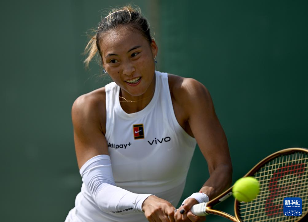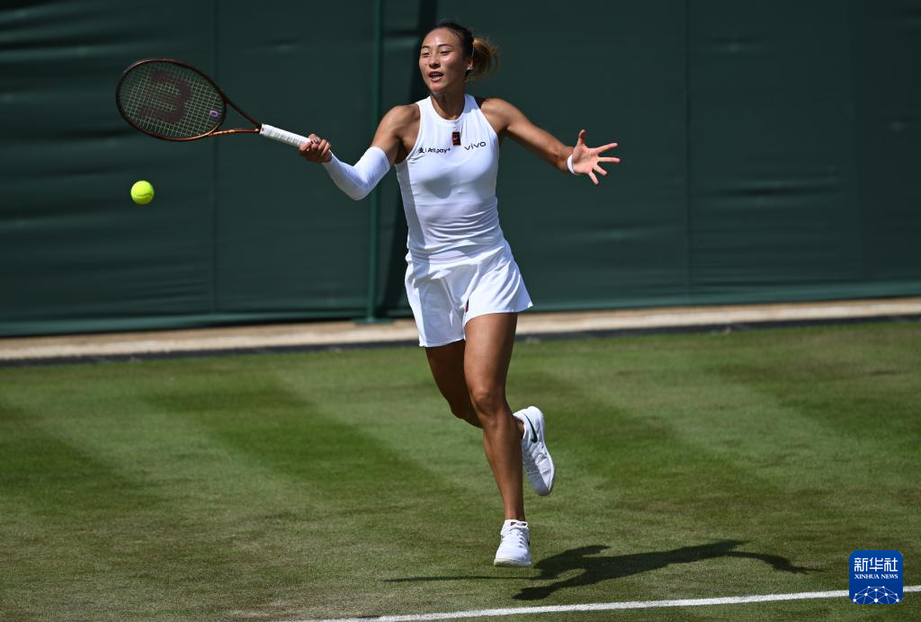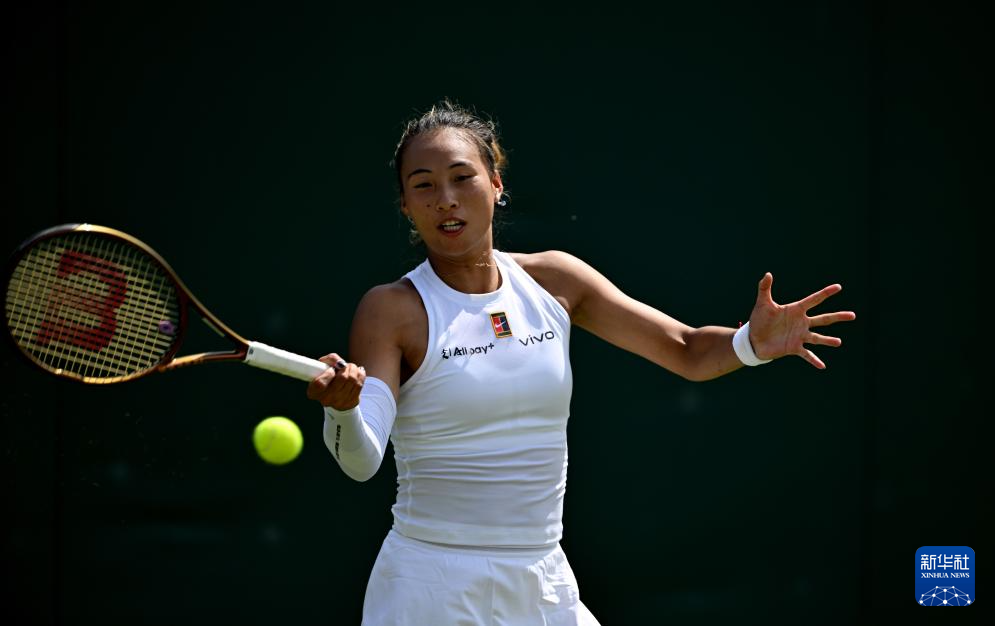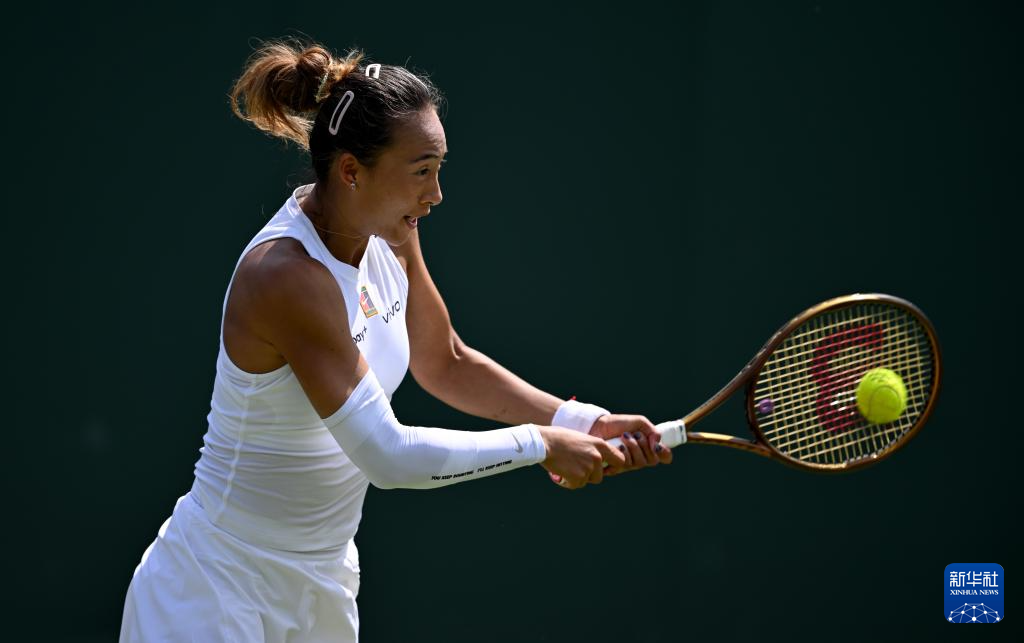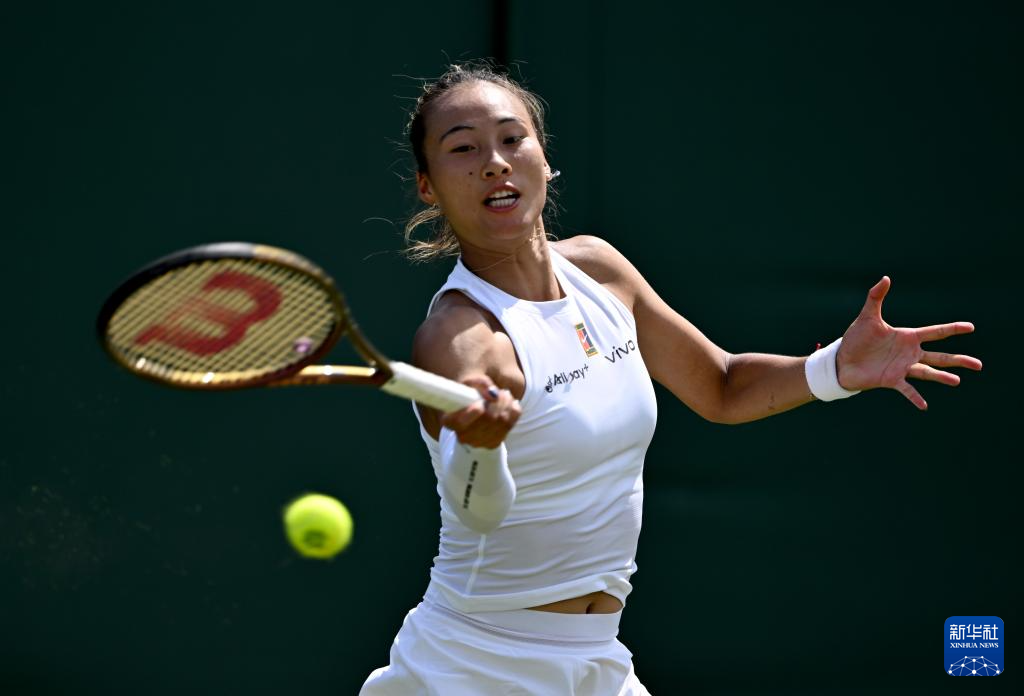 7月1日,郑钦文在比赛中。新华社记者 李颖 摄