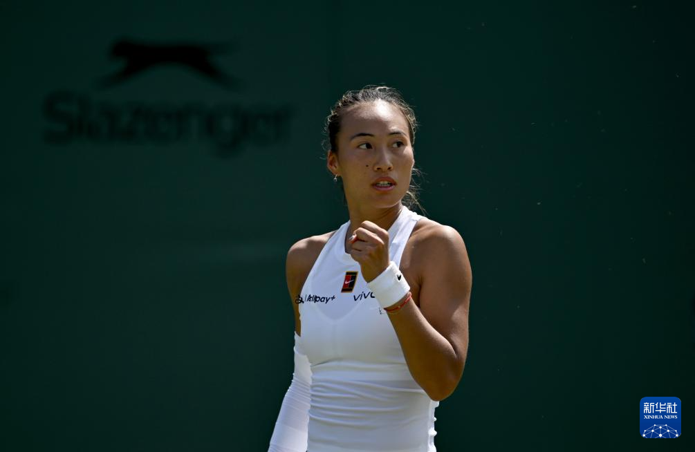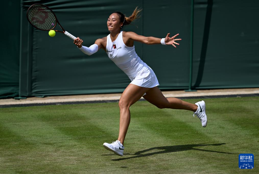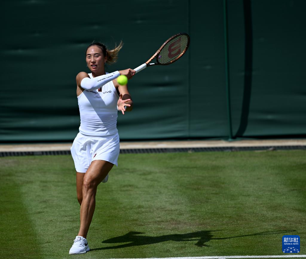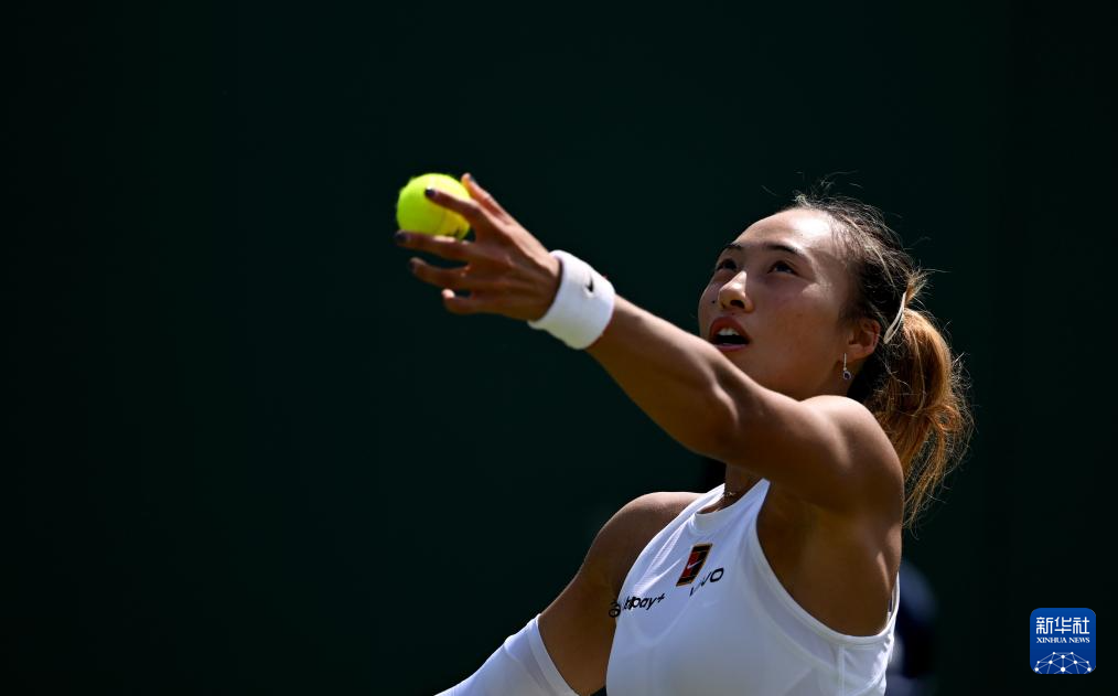 7月1日,郑钦文在比赛中。新华社记者 李颖 摄