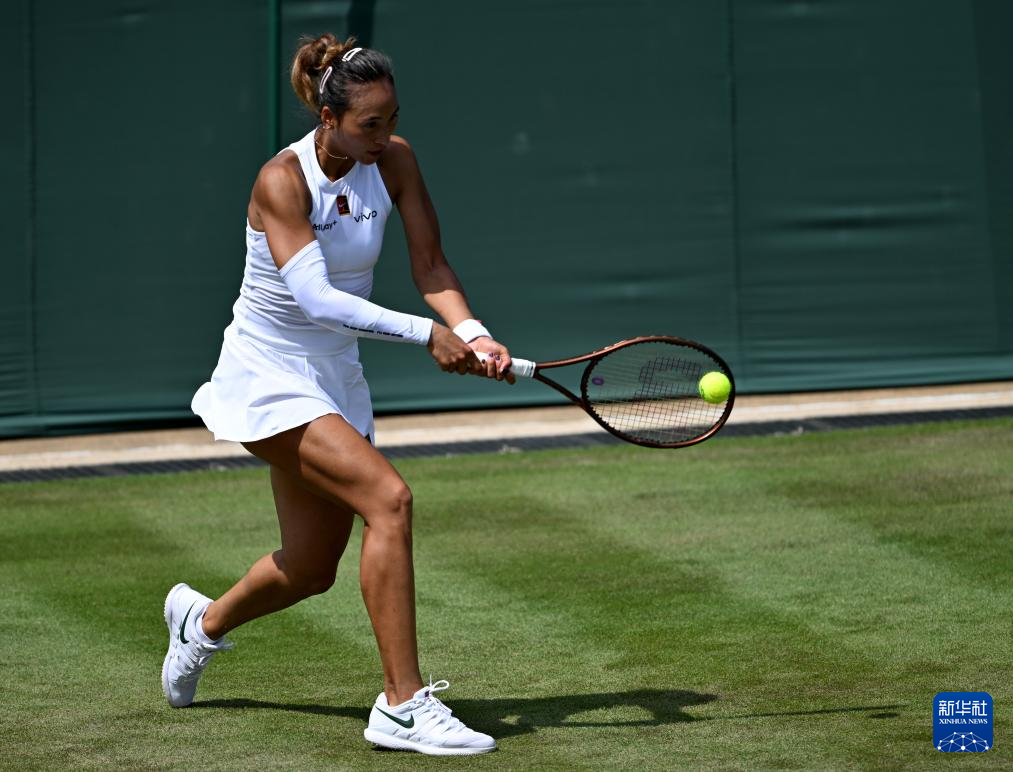 7月1日,郑钦文在比赛中回球。新华社记者 李颖 摄