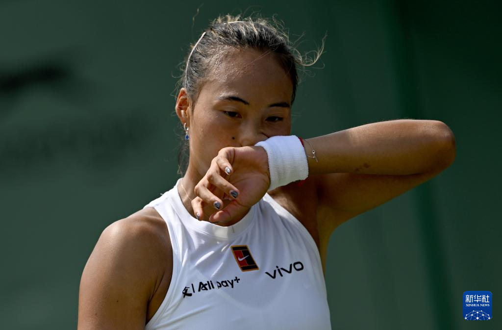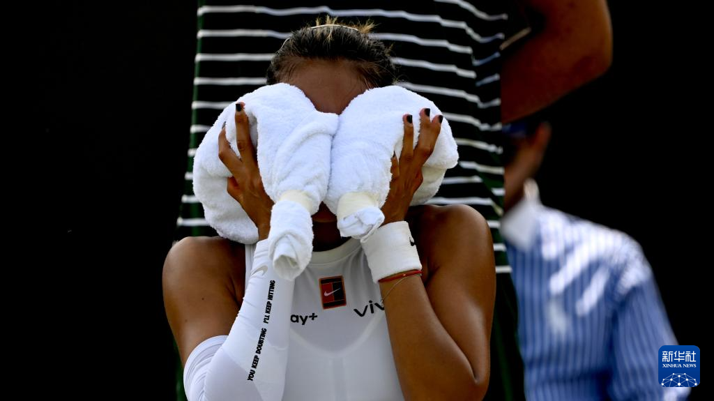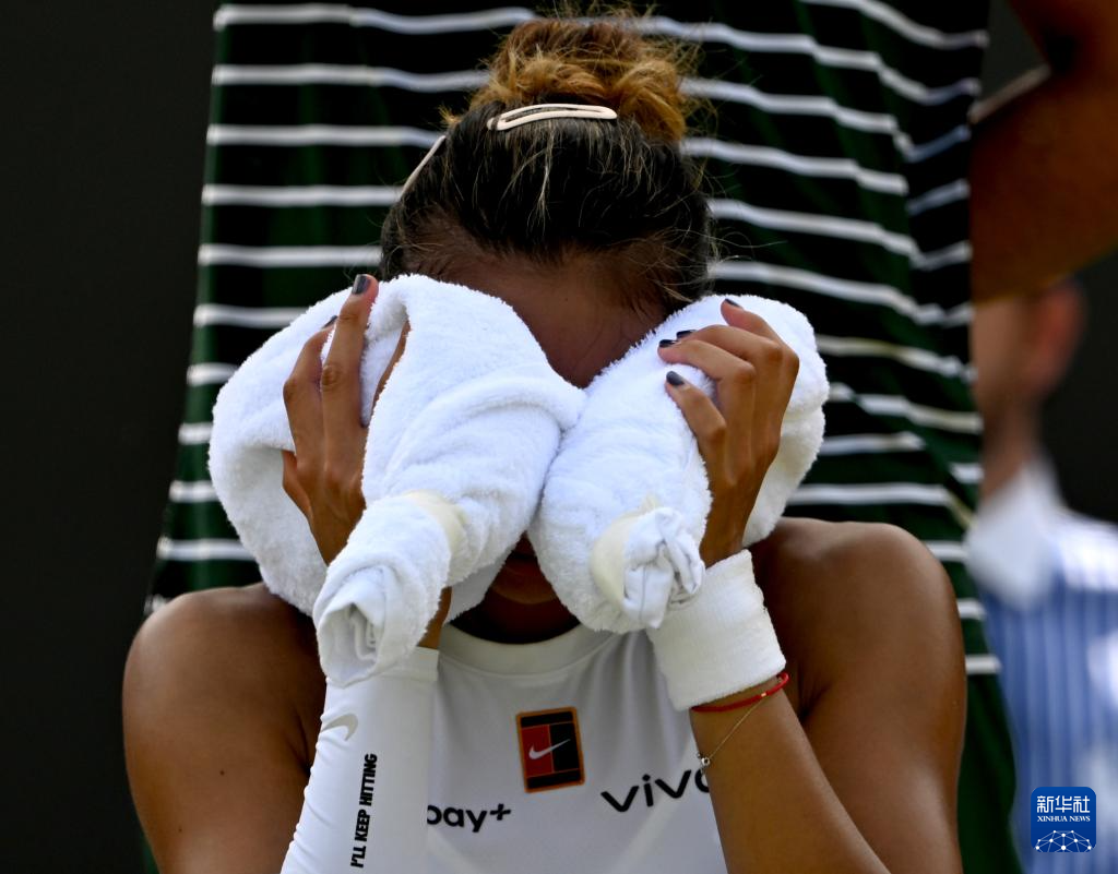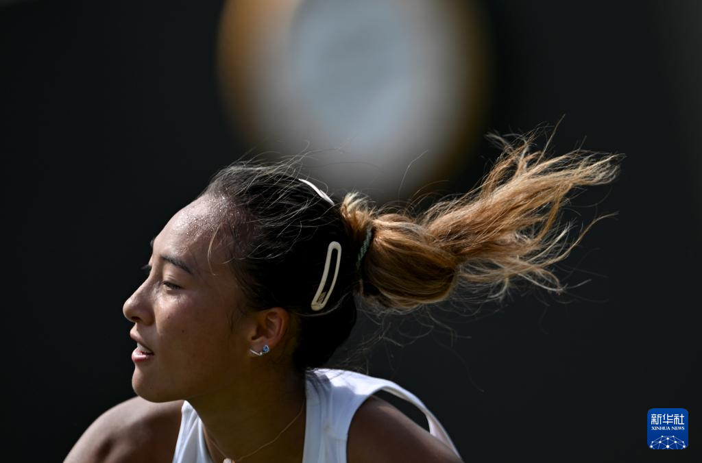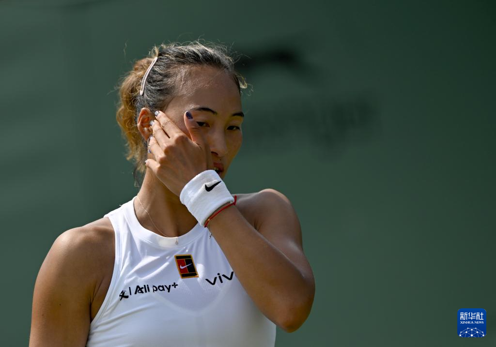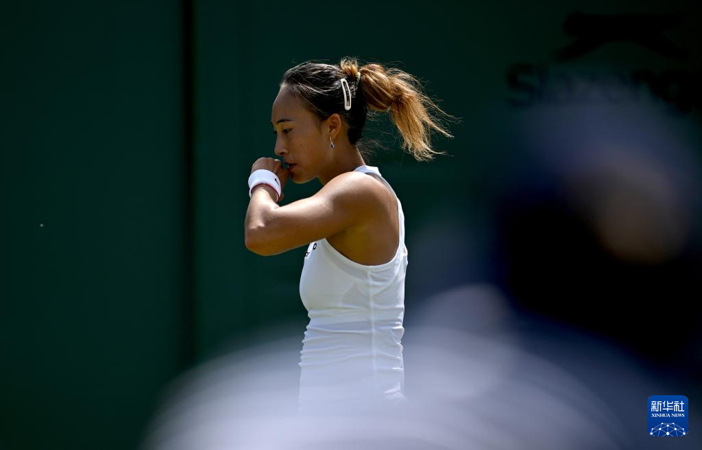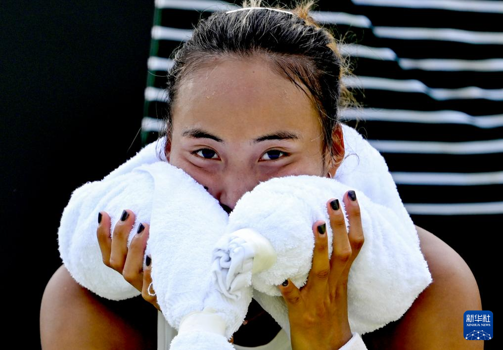 7月1日,郑钦文在比赛间隙。新华社记者 李颖 摄
