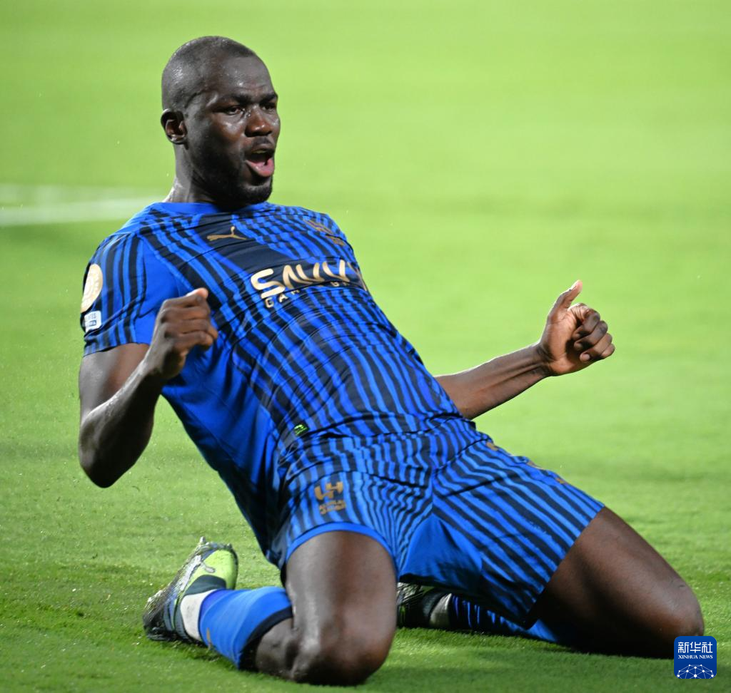 6月30日,利雅得新月队球员库利巴利进球后庆祝。新华社记者 吴晓凌 摄