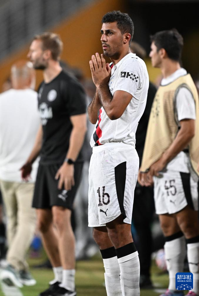 6月30日,曼彻斯特城队球员罗德里(前)在比赛即将结束时在场边观战。新华社记者 吴晓凌 摄