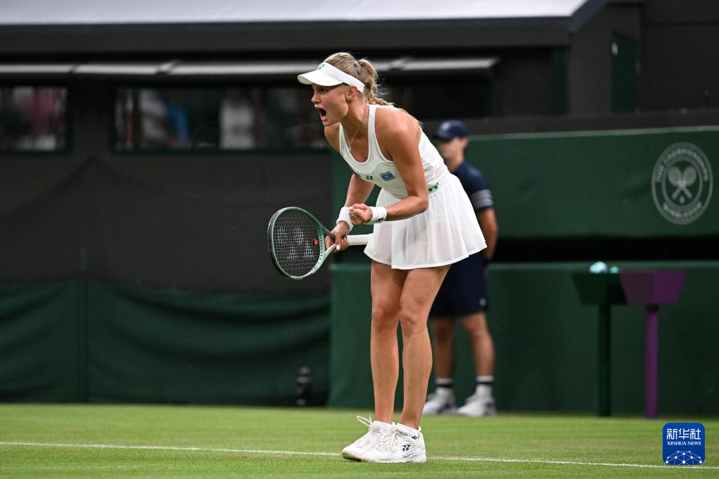 7月1日,乌克兰选手雅斯特雷姆斯卡在比赛中庆祝得分。新华社记者 赵丁喆 摄