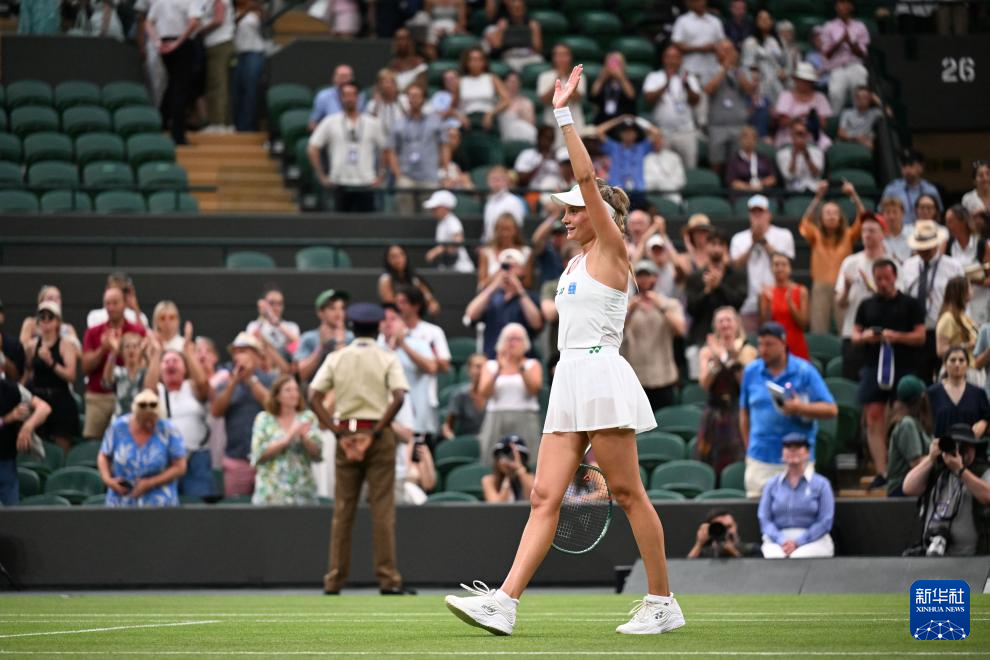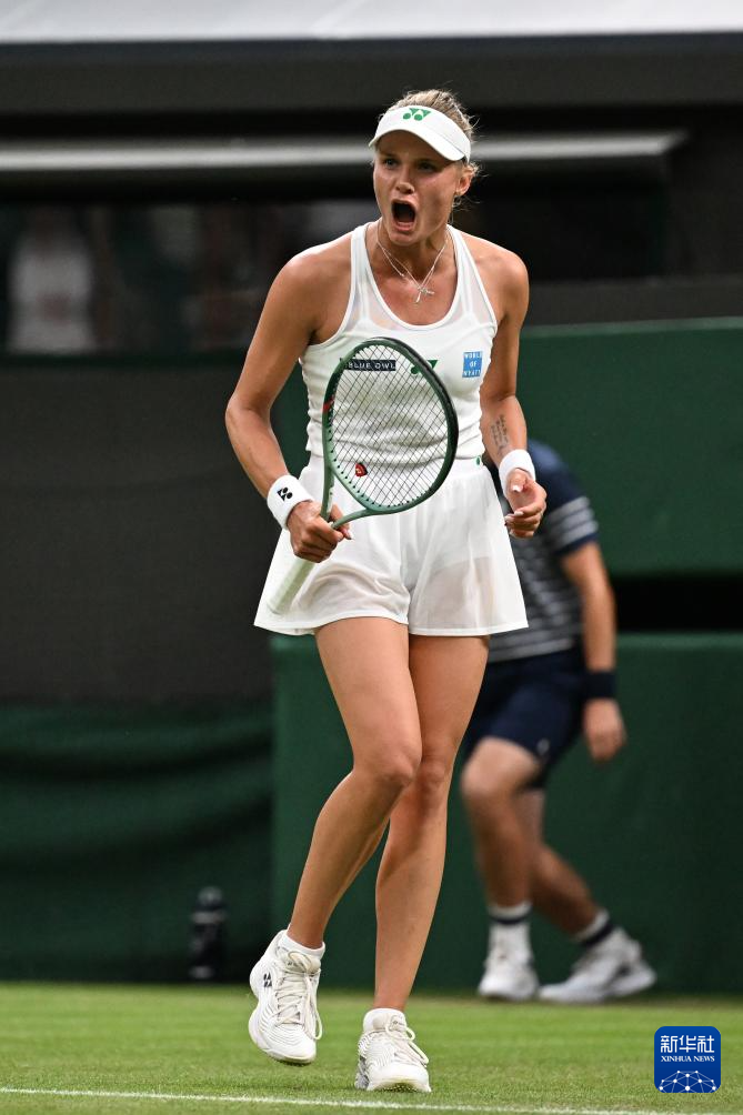7月1日,乌克兰选手雅斯特雷姆斯卡在比赛后庆祝。新华社记者 赵丁喆 摄