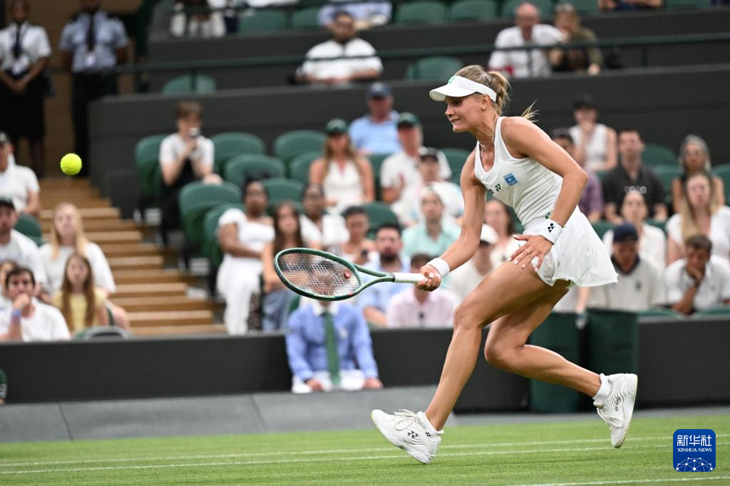 7月1日,乌克兰选手雅斯特雷姆斯卡在比赛中回球。新华社记者 赵丁喆 摄