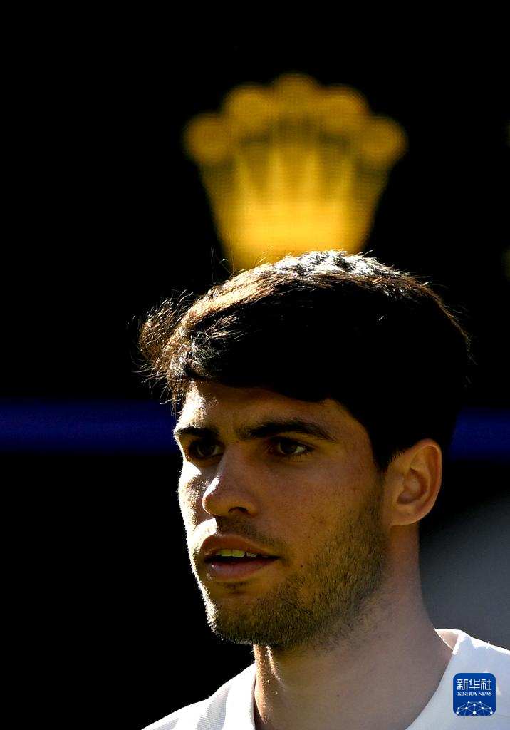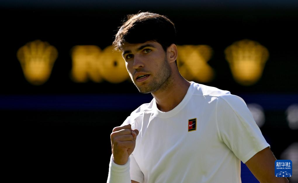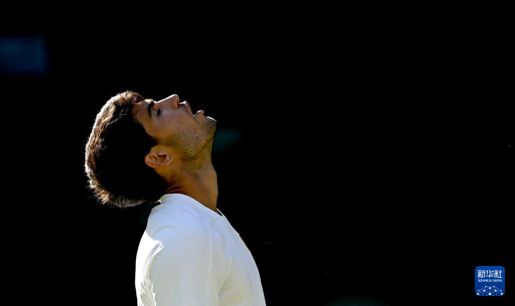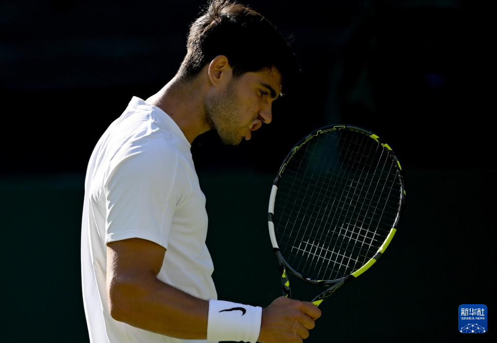 7月2日,阿尔卡拉斯在比赛中。新华社记者 李颖 摄
