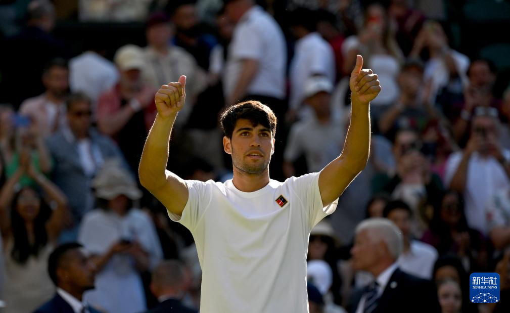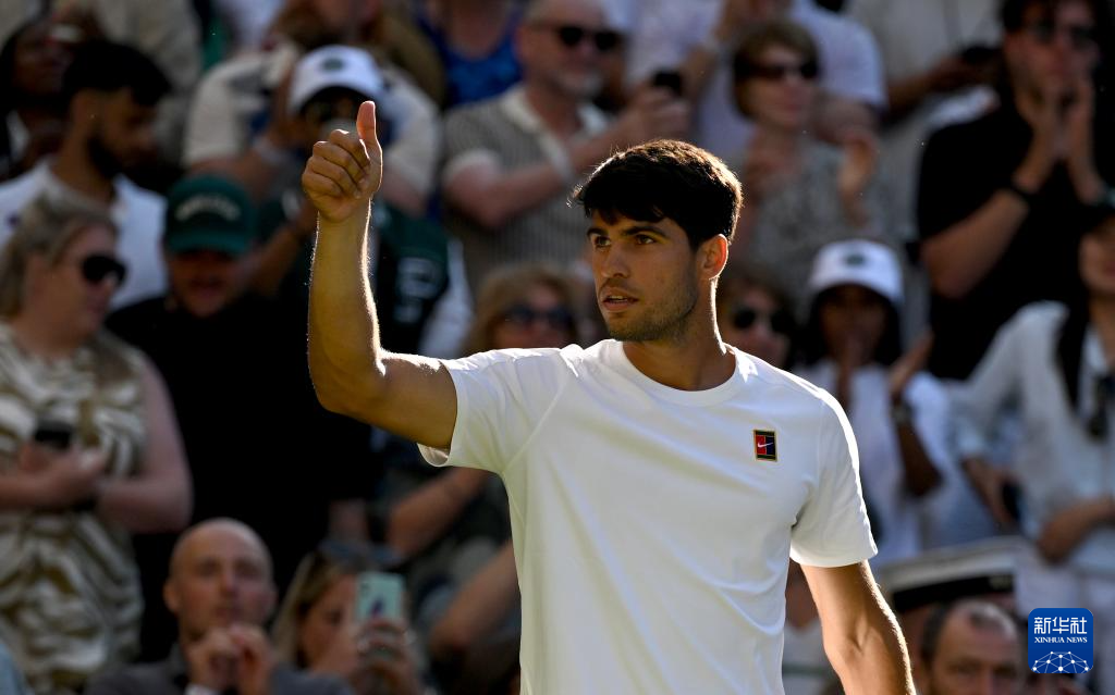 7月2日,阿尔卡拉斯在比赛后向球迷致意。新华社记者 李颖 摄