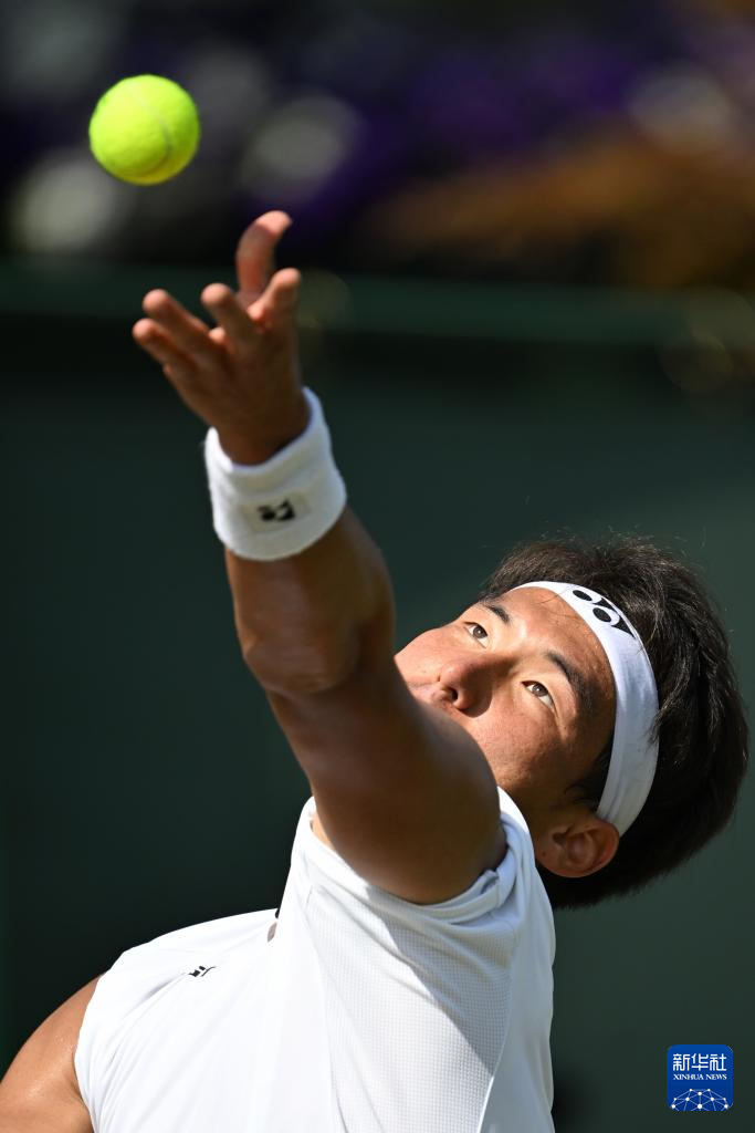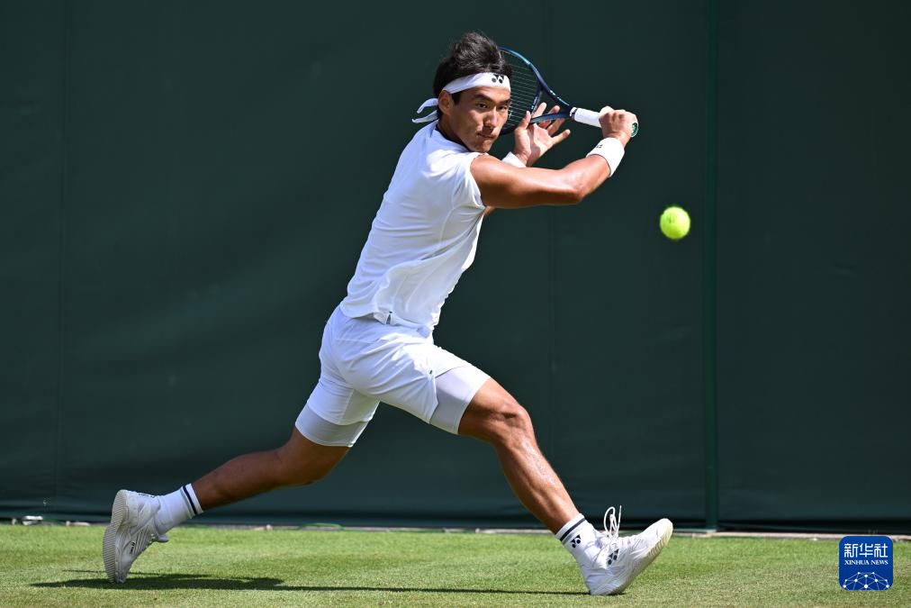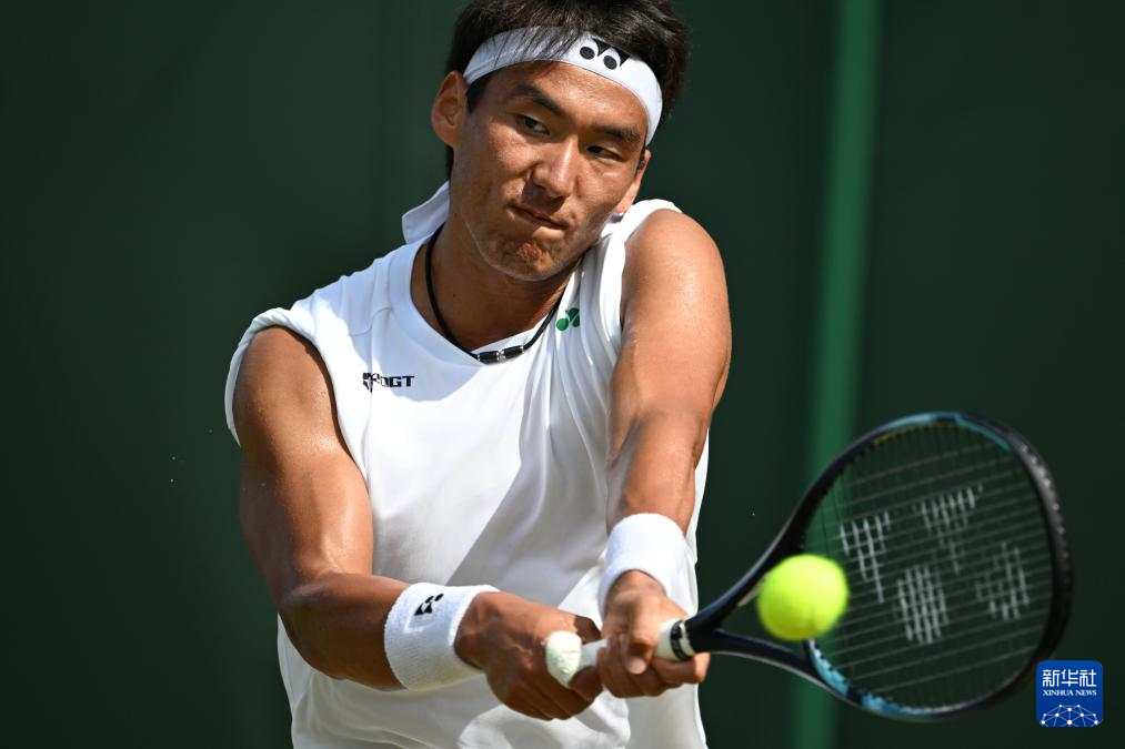7月2日,中岛布兰登在比赛中回球。新华社记者 赵丁喆 摄