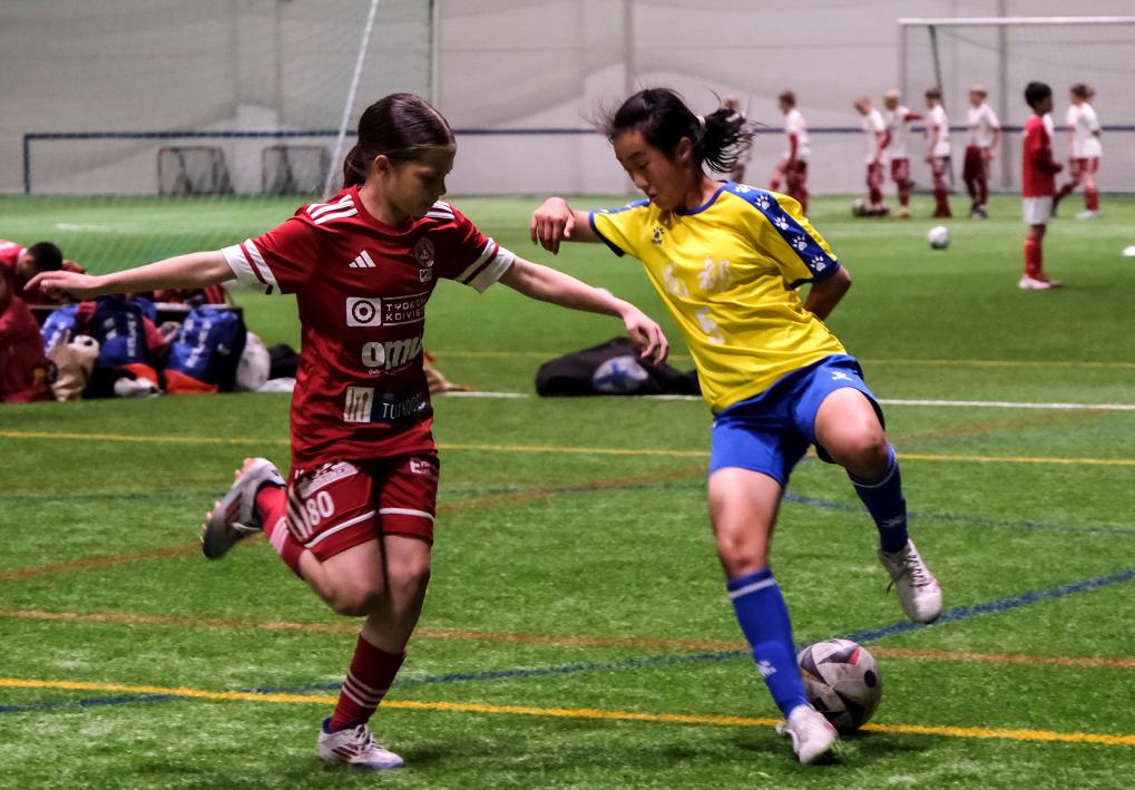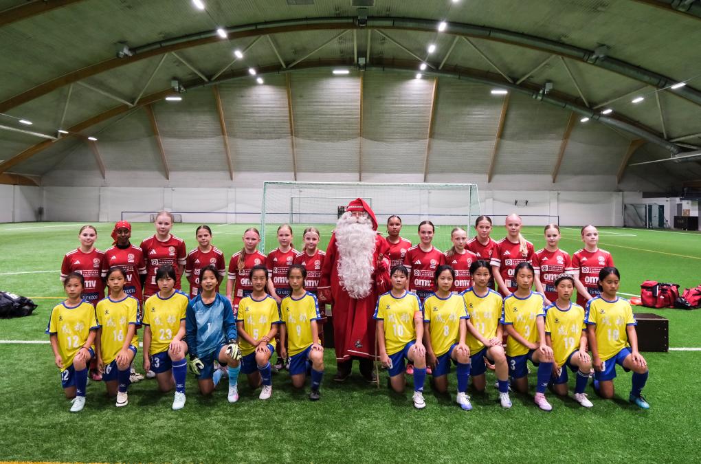 当天下午,比赛在罗瓦涅米桑塔体育中心室内足球场举行。女子组比赛率先开场,紧接着进行男子组比赛。中方两支代表队分别对阵当地圣诞老人足球俱乐部U12女子和男子梯队。比赛特别邀请罗瓦涅米市官方认证的“圣诞老人”亲临现场,为比赛开球,并为孩子们加油助威。