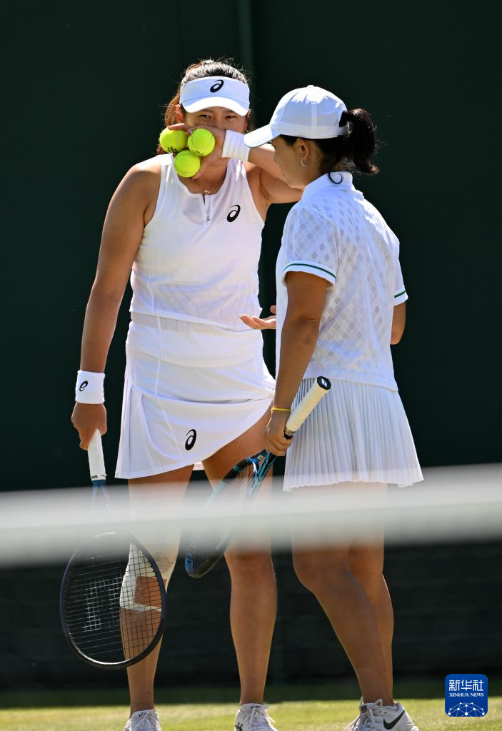 7月3日,徐一璠/杨钊煊(左)在比赛中交流。新华社记者 李颖 摄