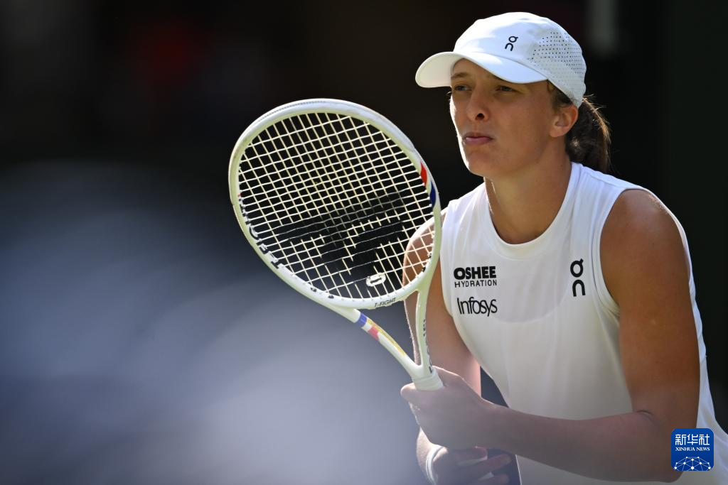 7月3日,斯维亚特克在比赛中。新华社记者 赵丁喆 摄