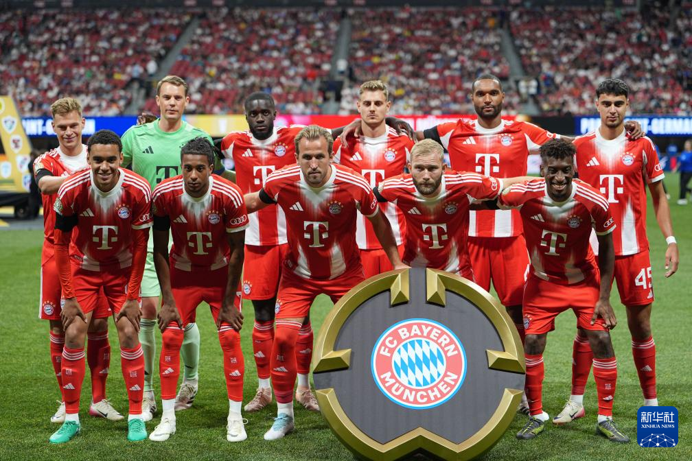7月5日,拜仁慕尼黑队首发球员在赛前合影。