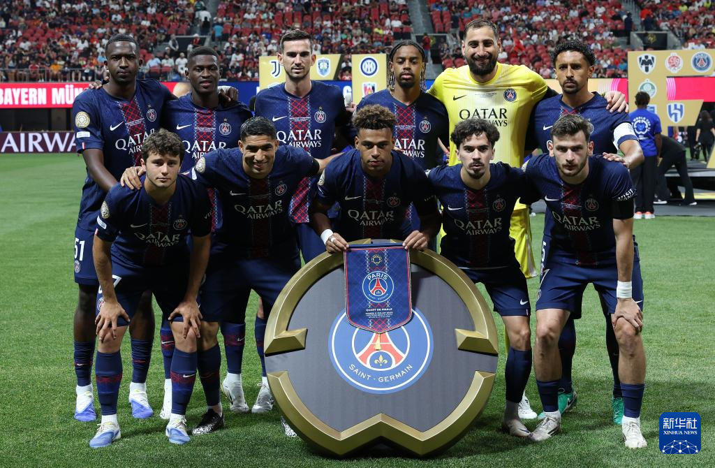 7月5日,巴黎圣日耳曼队首发球员在比赛前合影。