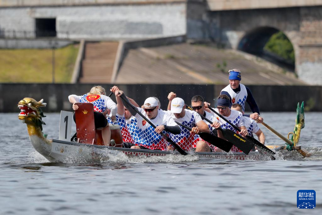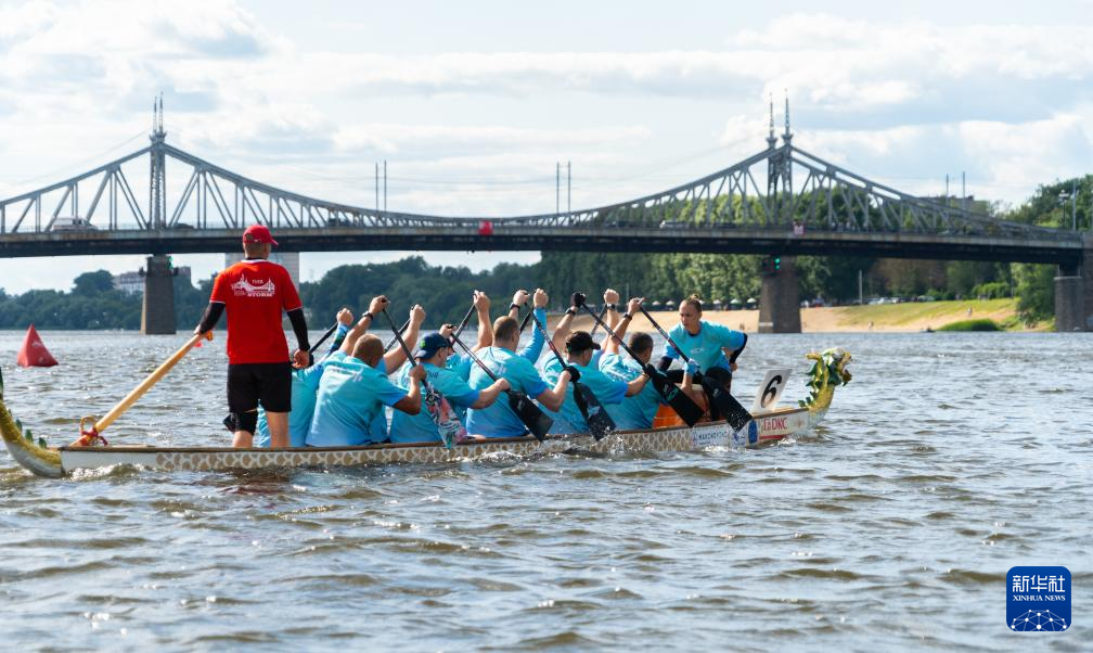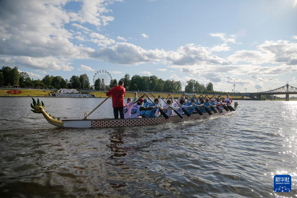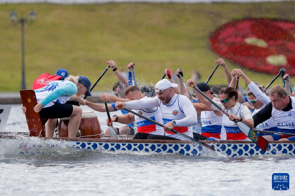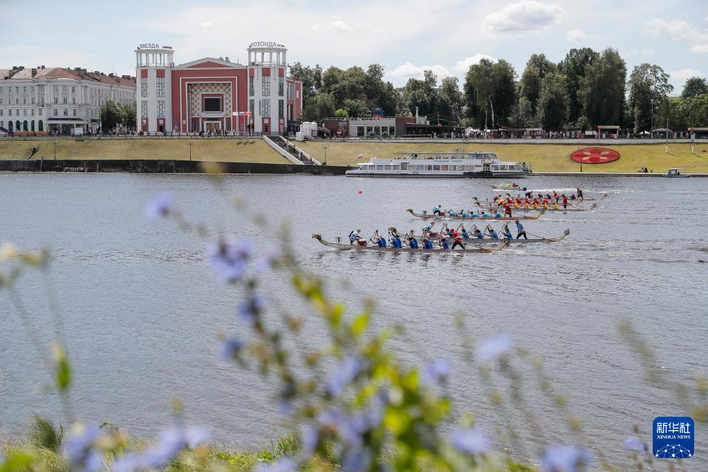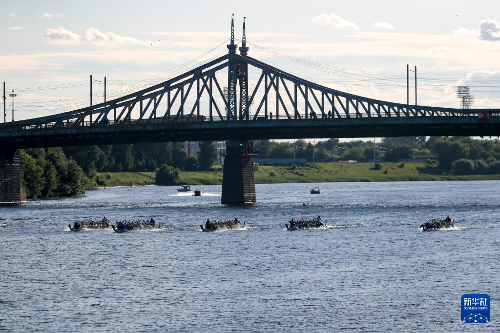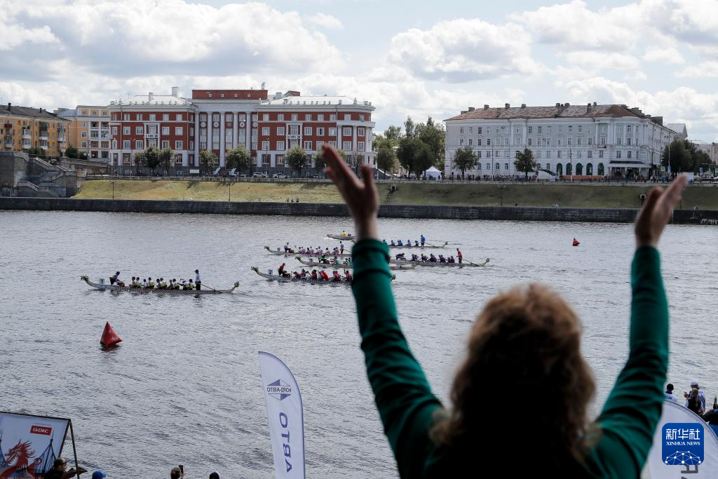 7月5日,参加龙舟挑战赛的选手们在伏尔加河上行进。