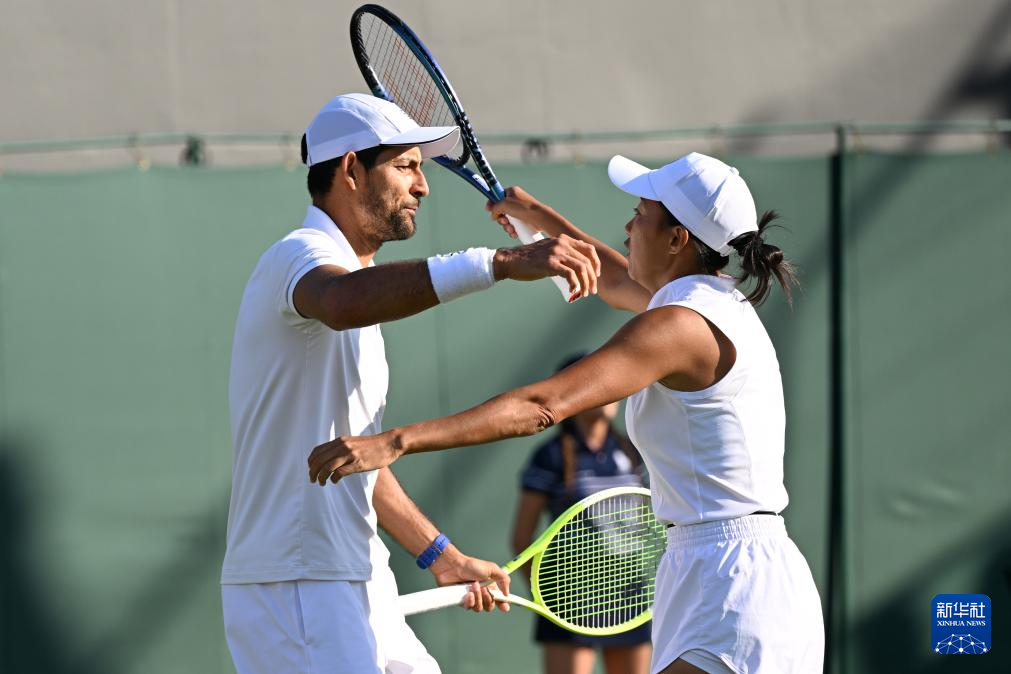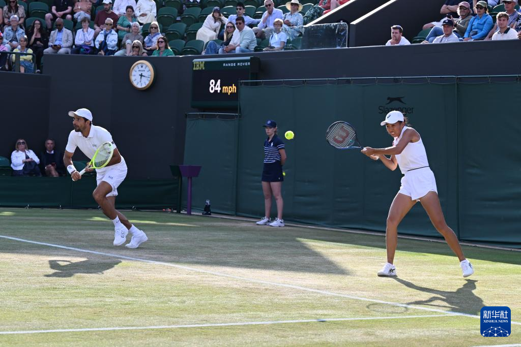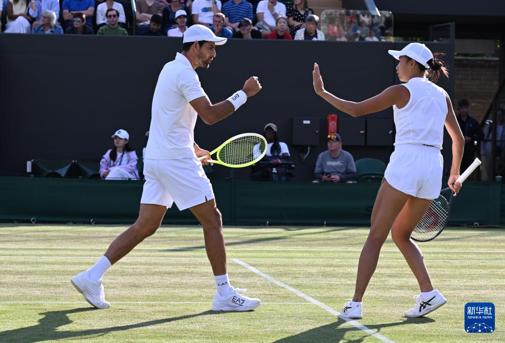 当日,在英国伦敦举行的2025温布尔登网球公开赛混双四分之一决赛中,张帅(中国)/阿雷瓦洛(萨尔瓦多)组合2比0战胜克劳奇克(美国)/斯库普斯基(英国)组合,晋级四强。