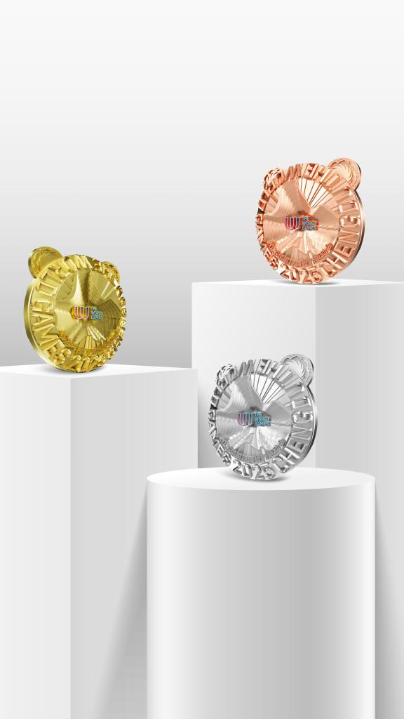 这是成都世运会金、银、铜牌效果图。 新华社发(成都世运会执委会供图)