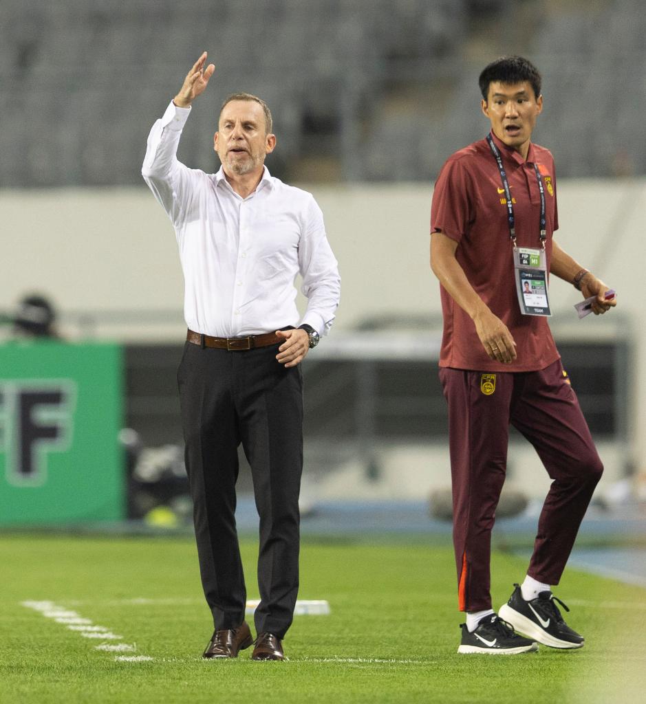 7月7日,中国队代理主教练德扬·久尔杰维奇(左)在场边指挥。新华社发(全休相 摄)