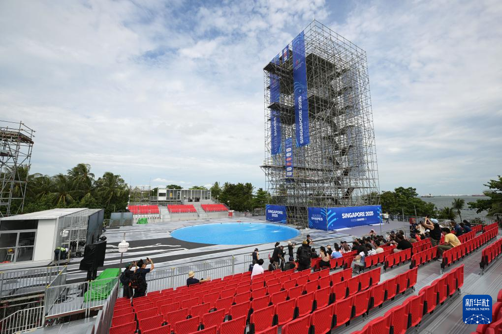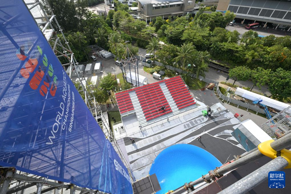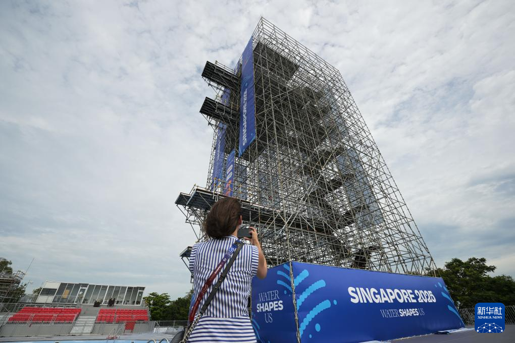 这是7月7日在新加坡拍摄的2025年世界游泳锦标赛高台跳水项目比赛场地。新华社发(邓智炜摄)