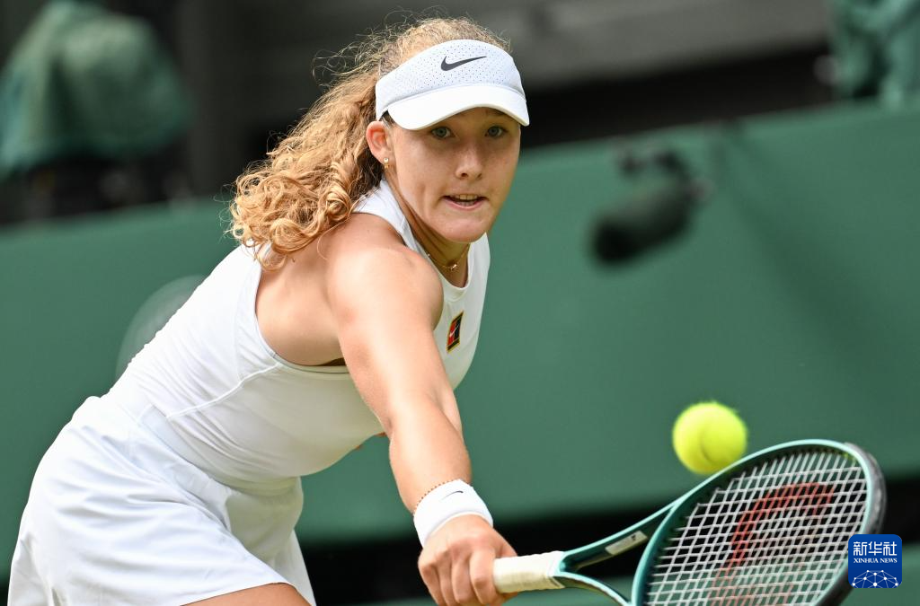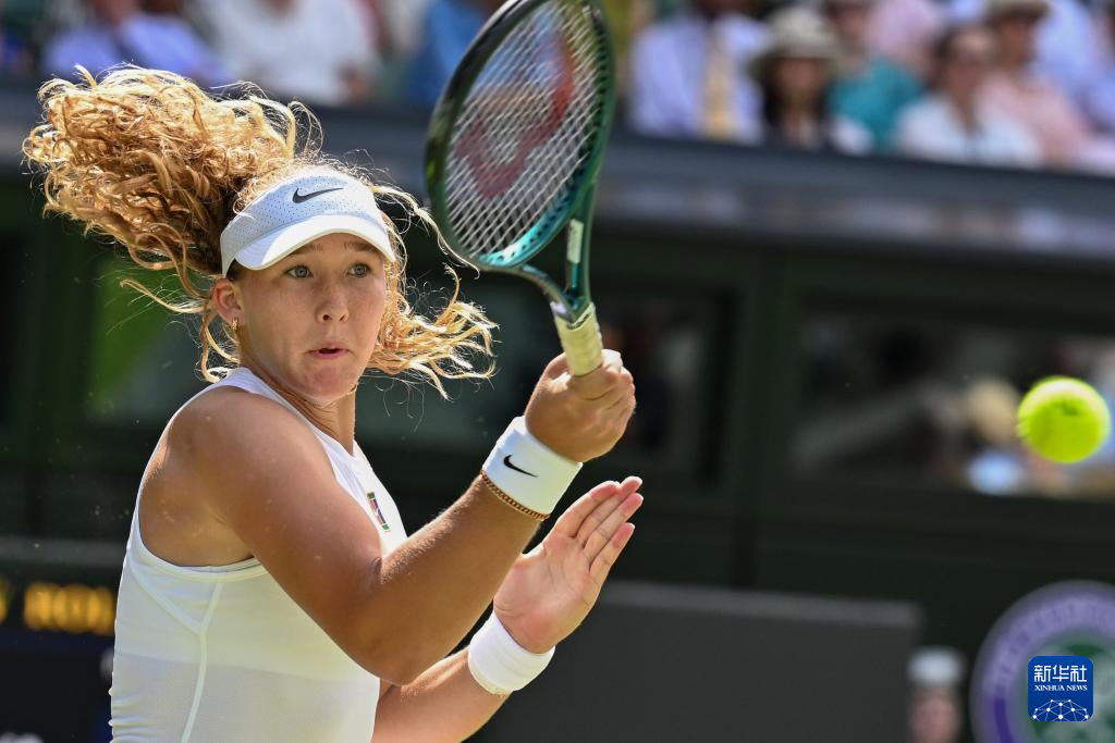 7月9日,安德烈耶娃在比赛中回球。新华社记者 赵丁喆 摄