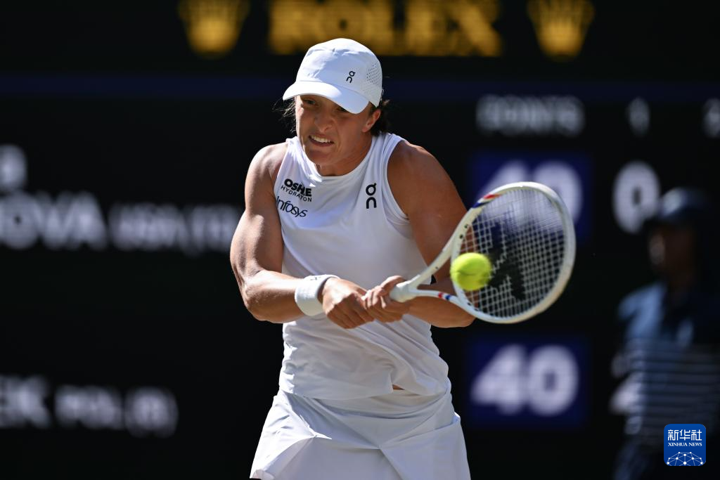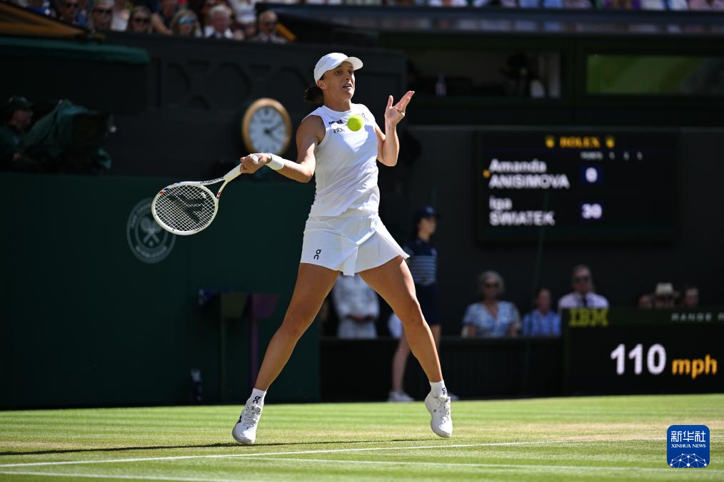 7月12日,斯维亚特克在比赛中庆祝得分。