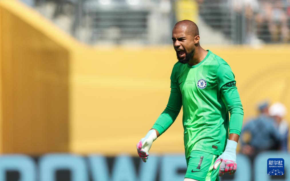 7月13日,切尔西队守门员罗伯特·桑切斯在比赛中。