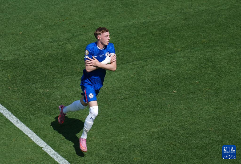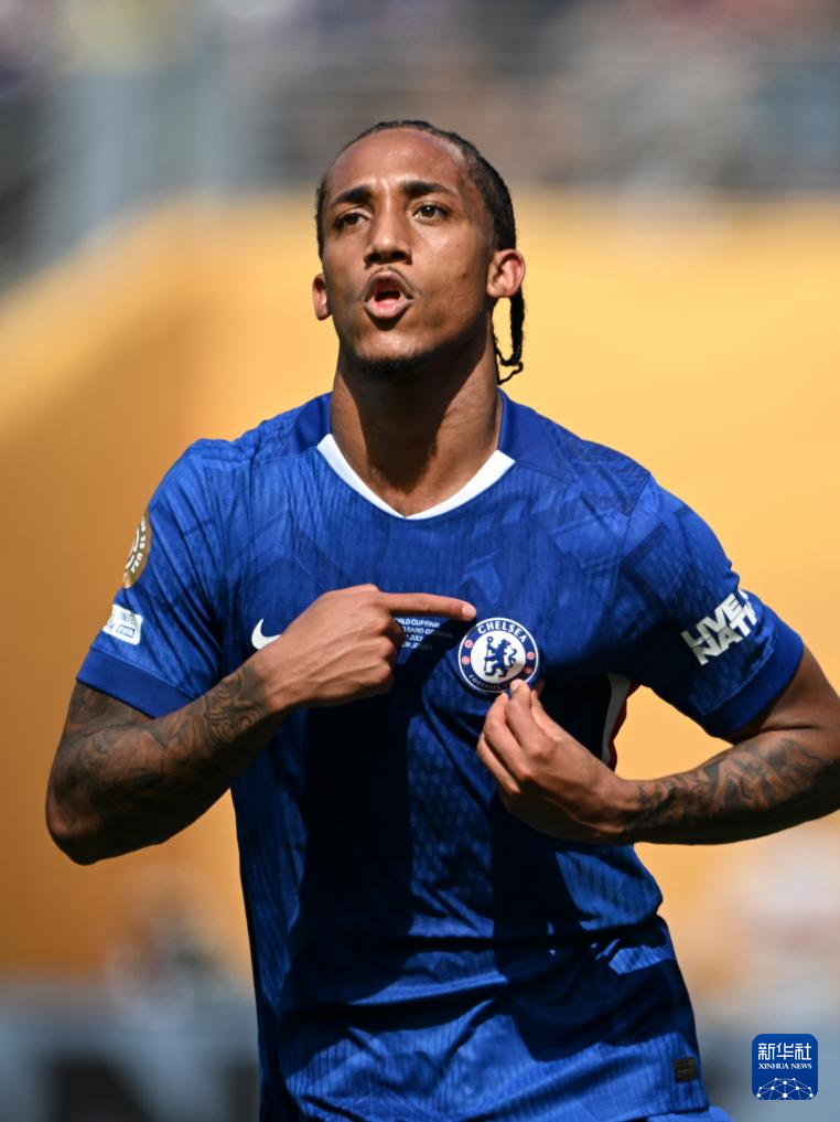 7月13日,切尔西队球员帕尔默在比赛中庆祝进球。