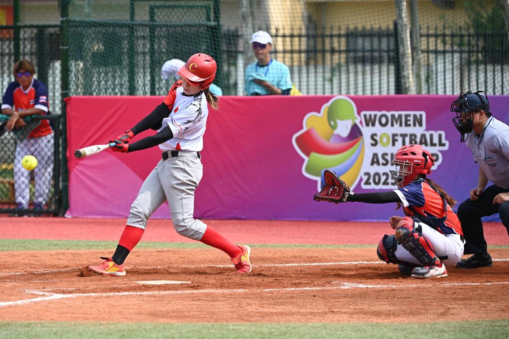 中国队此后在第二局再得3分,并于第四局由桑于娟送出“再见安打”,赢得本届亚洲杯上的第三场胜利。